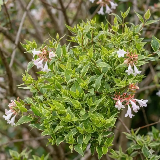 L'Abelia grandiflora 'Jelly Beans' est un arbuste d'ornement miniature qui séduit par sa générosité et ses variations chromatiques constantes. Ce cultivar nain forme une boule dense et compacte, couverte de petites feuilles luisantes qui changent de teinte au fil des saisons. De juillet jusqu'aux gelées, il produit une multitude de clochettes parfumées d'un blanc rosé délicat, portées par des calices pourpres qui persistent sur l'arbuste bien après la chute des fleurs, prolongeant ainsi son intérêt décoratif.
