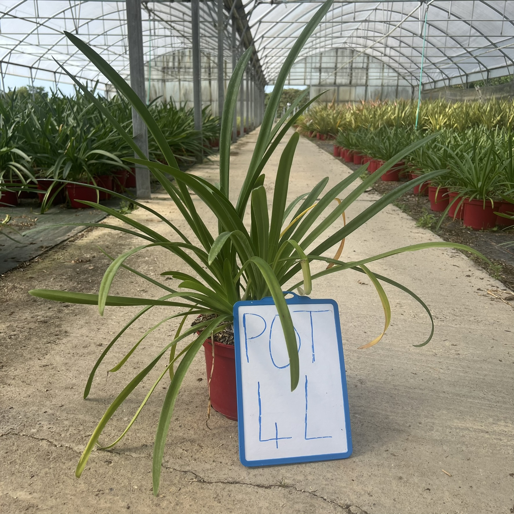 Cette plante se reconnaît à ses longues feuilles rubanées, atteignant jusqu’à 60 cm de hauteur. Elles forment une touffe dense qui structure harmonieusement les espaces. En été, elle produit de grandes ombelles de fleurs en clochettes, dans des nuances allant du bleu clair au bleu soutenu. Très mellifères, elles attirent abeilles et papillons, participant à l’équilibre écologique du jardin.