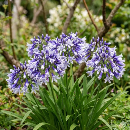 L'Agapanthe 'Fireworks' est une véritable révolution botanique qui a d'ailleurs été finaliste du prestigieux concours de la Plante de l'Année au Chelsea Flower Show en 2019. Première variété à feuillage persistant offrant une floraison bicolore, elle porte merveilleusement bien son nom : ses spectaculaires ombelles sont composées de multiples fleurs tubulaires dont la base est d'un bleu-violet profond et l'extrémité d'un blanc pur éclatant, imitant à la perfection l'explosion d'un feu d'artifice.