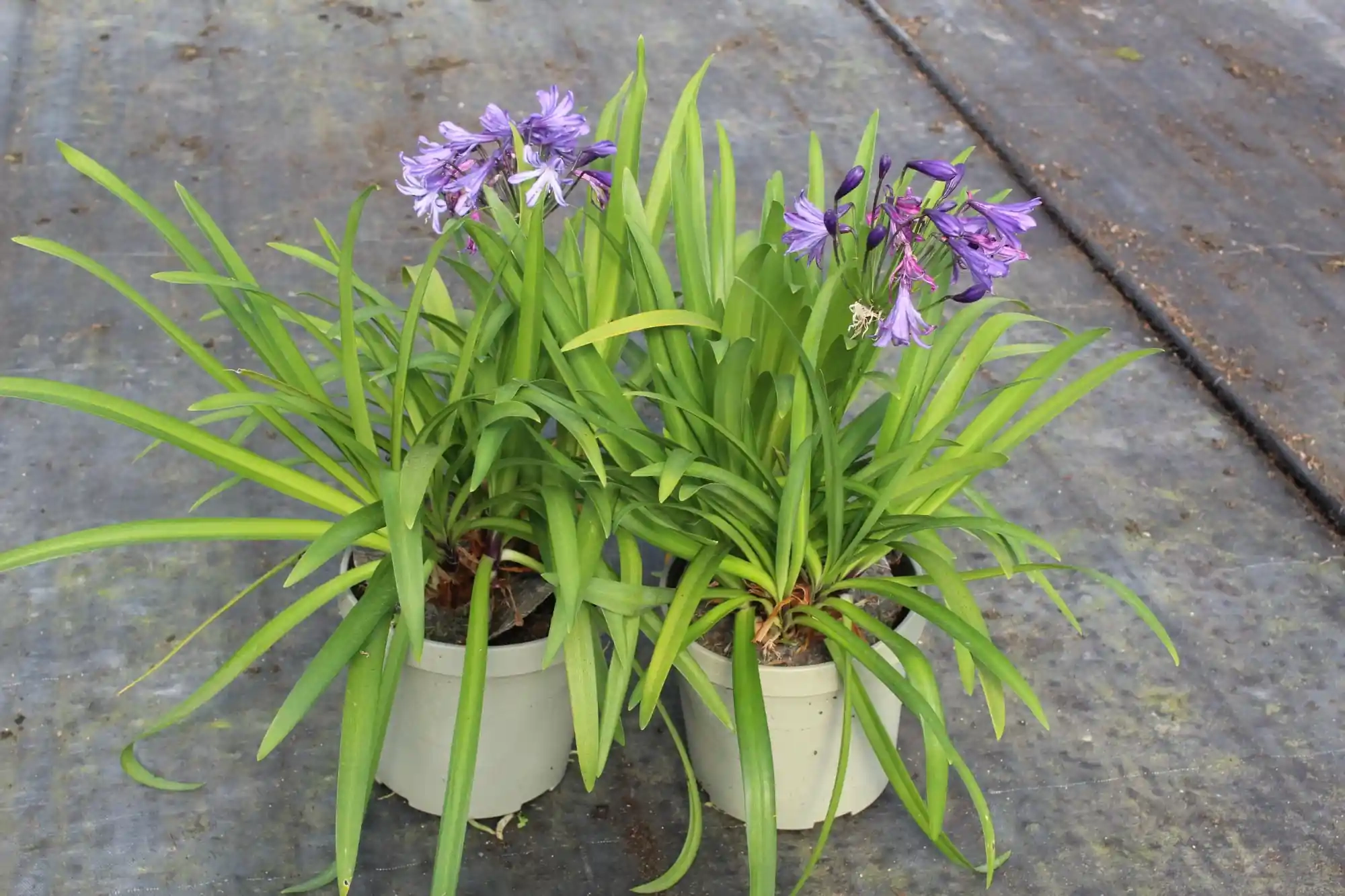 L'Agapanthe 'Poppin' Star' (gamme Everpanthus) est une création horticole d'une générosité exceptionnelle qui renouvelle totalement le genre. De la fin du printemps jusqu'au début de l'automne, elle produit une abondance de tiges courtes surmontées de belles ombelles sphériques. Son véritable charme réside dans le détail fascinant de ses fleurs : chaque pétale bleu clair très doux est finement strié d'une ligne centrale violet sombre, créant un effet bicolore rayé d'un grand raffinement.