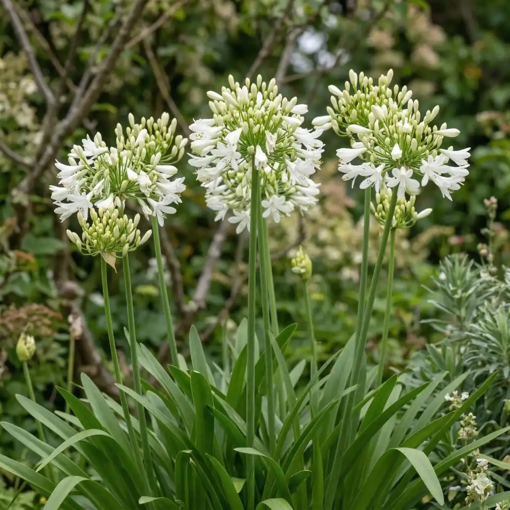 L'Agapanthus 'Emerald Ice' est une plante vivace d'une distinction rare, plébiscitée pour son double intérêt ornemental. Elle se distingue par un feuillage persistant unique, d'un vert tendre délicatement bordé de blanc crème, qui reste décoratif tout au long de l'année. De juillet à septembre, elle dresse fièrement des ombelles denses de fleurs d'un blanc pur, apportant une luminosité exceptionnelle et une structure graphique aux jardins contemporains ou méditerranéens.