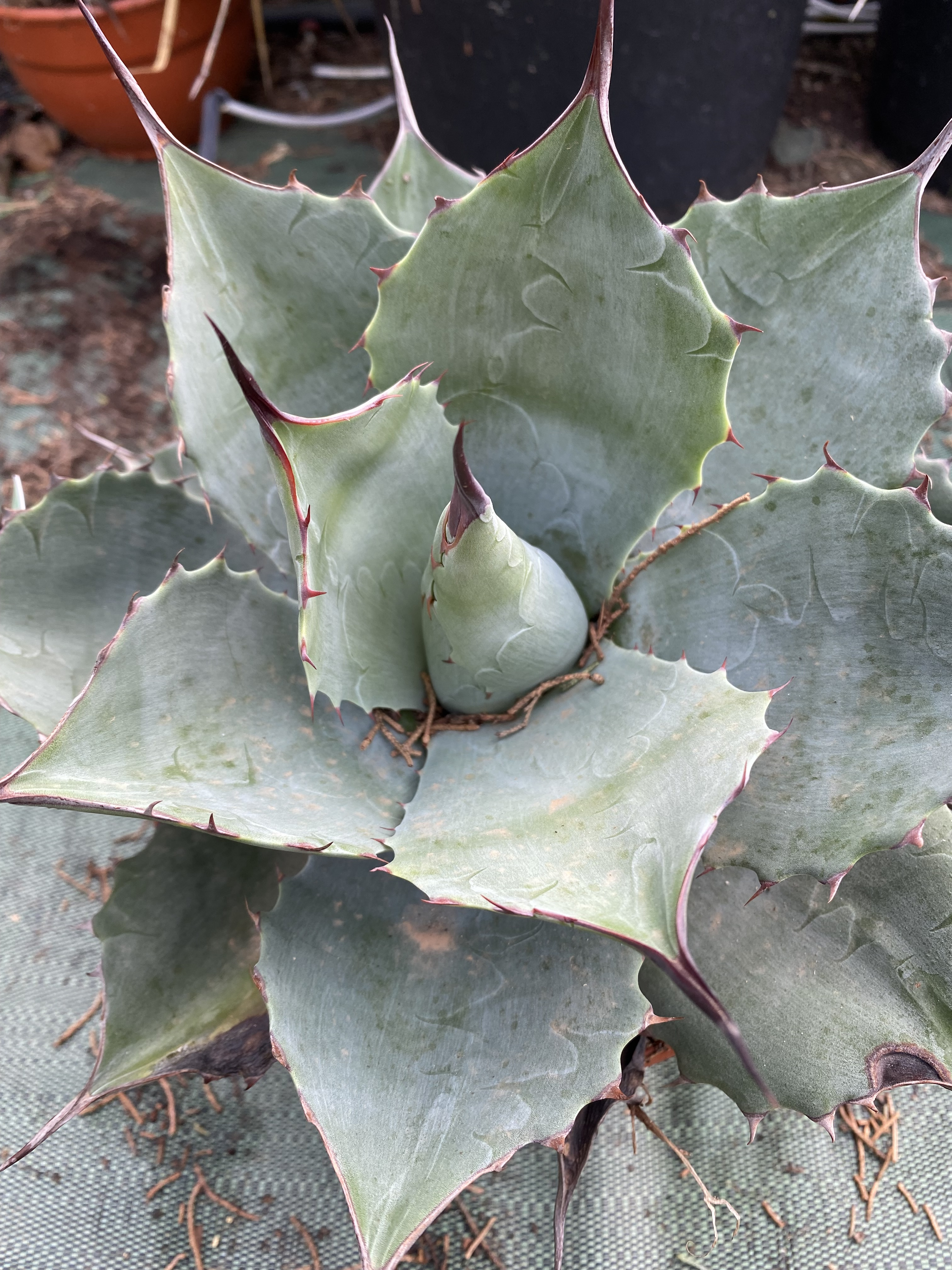 Nom botanique : Agave ‘Blue Brian’ (agave hybride décoratif, agave de collection, Asparagaceae, Agavoideae)
