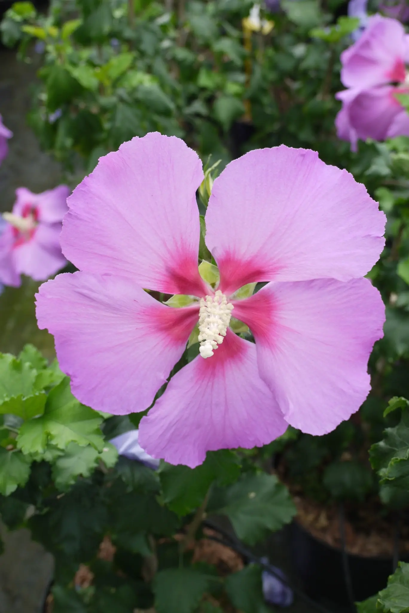 Le coloris très doux de l'Althéa 'Hibisa parma' en fait un véritable atout pour les aménagements estivaux :