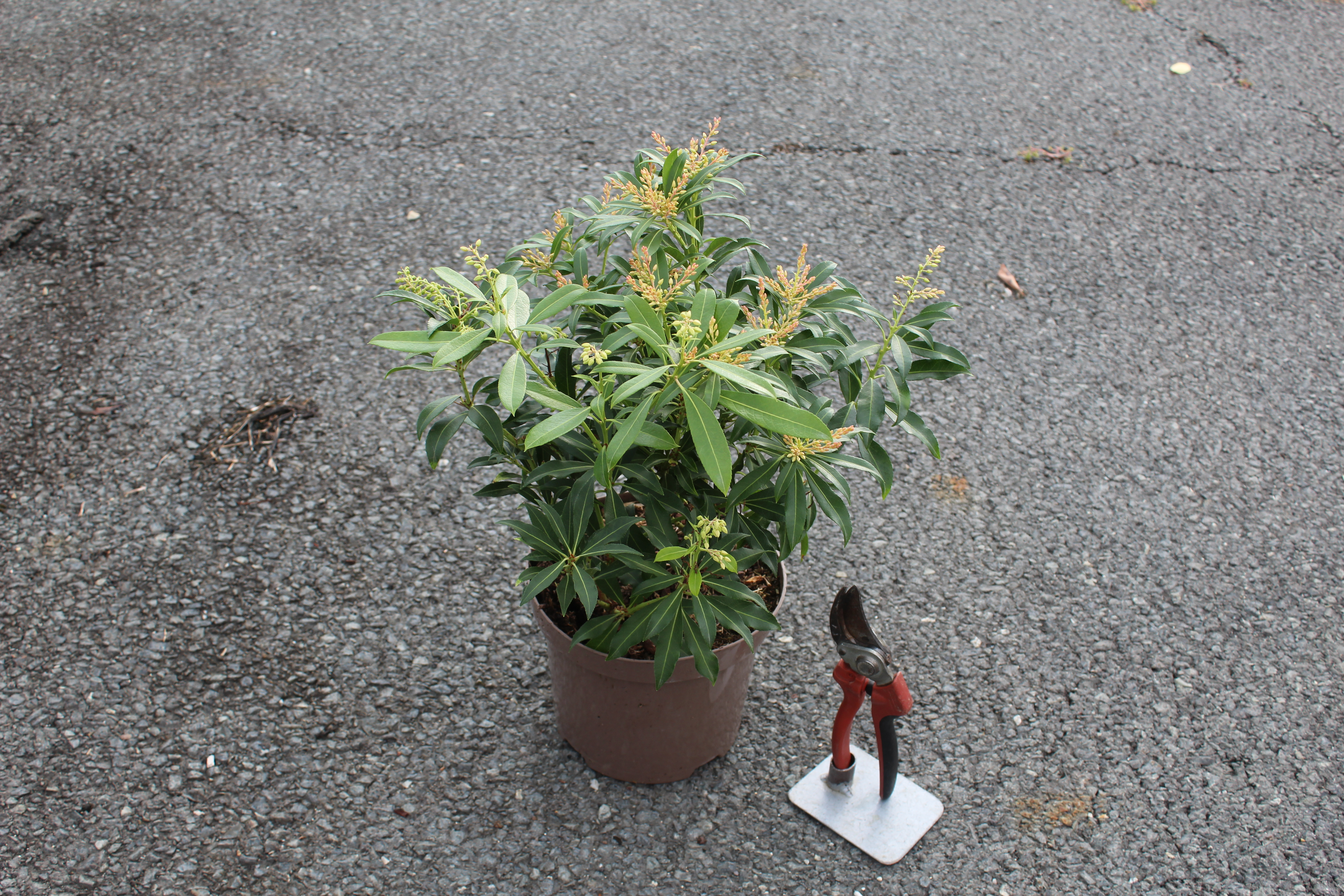 L'Andromède 'Forest Flame' adopte naturellement une silhouette harmonieuse. La taille n'est donc pas obligatoire. Si vous souhaitez rééquilibrer sa forme ou nettoyer l'arbuste, intervenez exclusivement juste après la floraison (en mai) en coupant délicatement les grappes de fleurs fanées. Ne taillez jamais en automne ou en hiver, sous peine de supprimer les boutons floraux du printemps suivant !