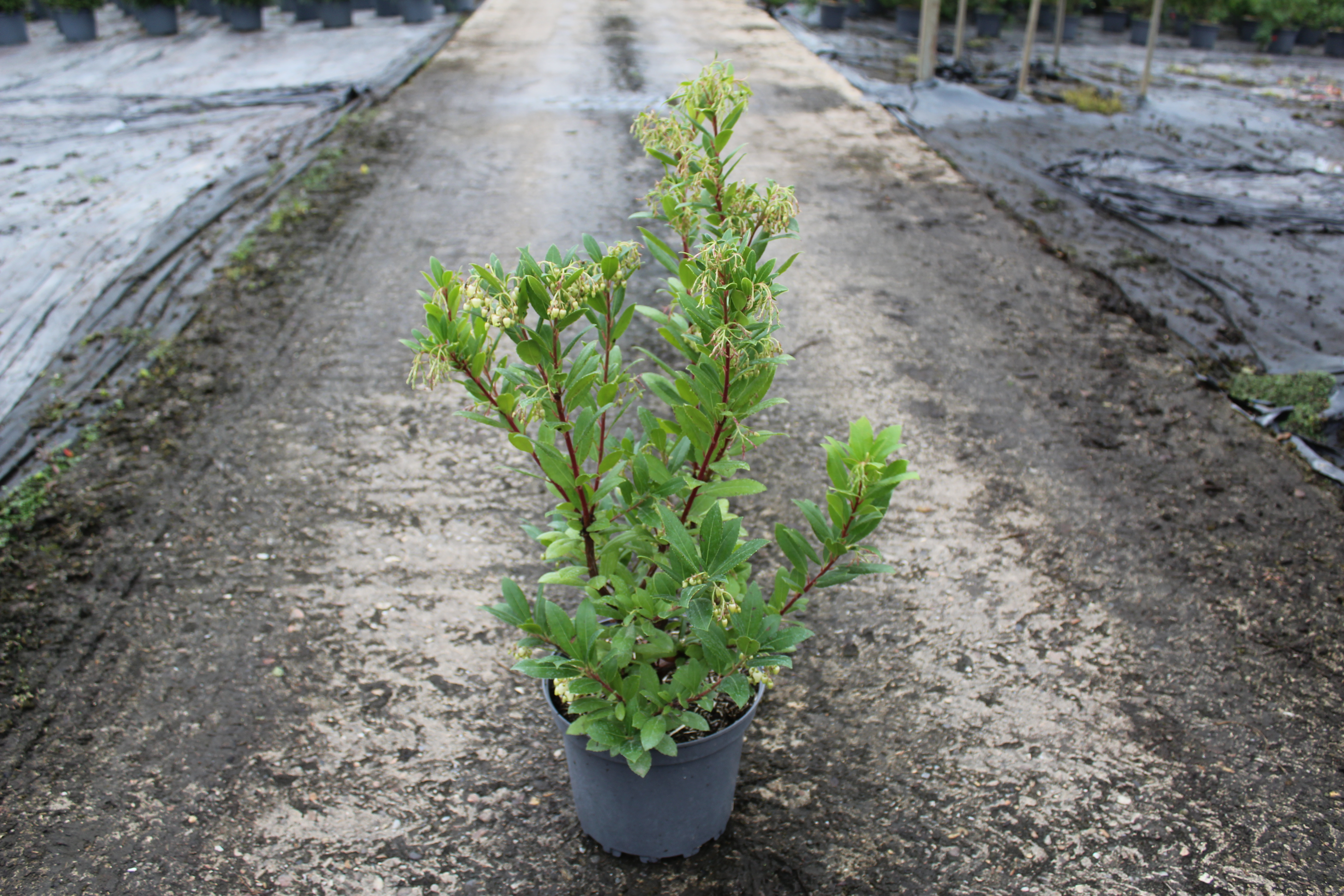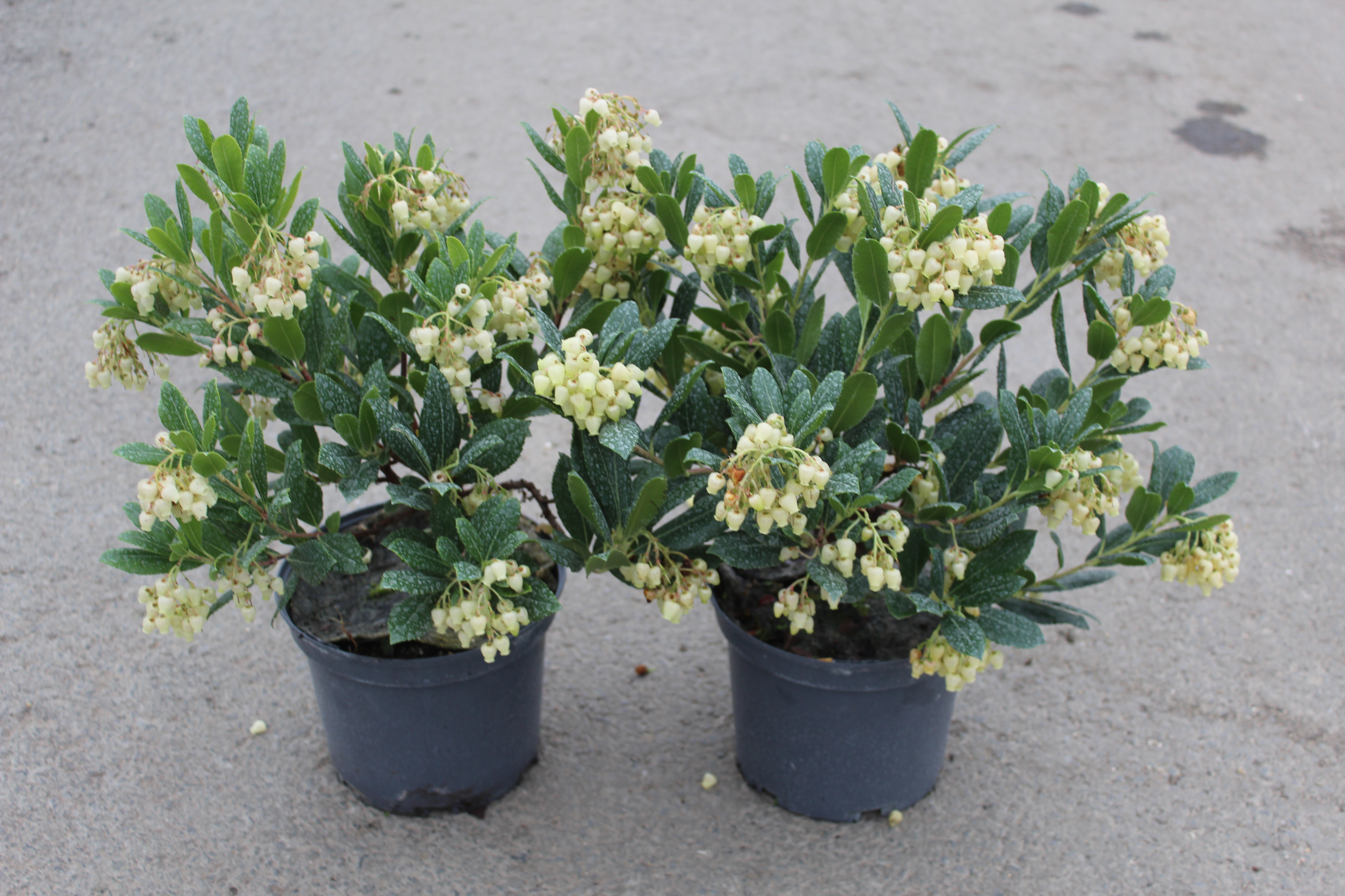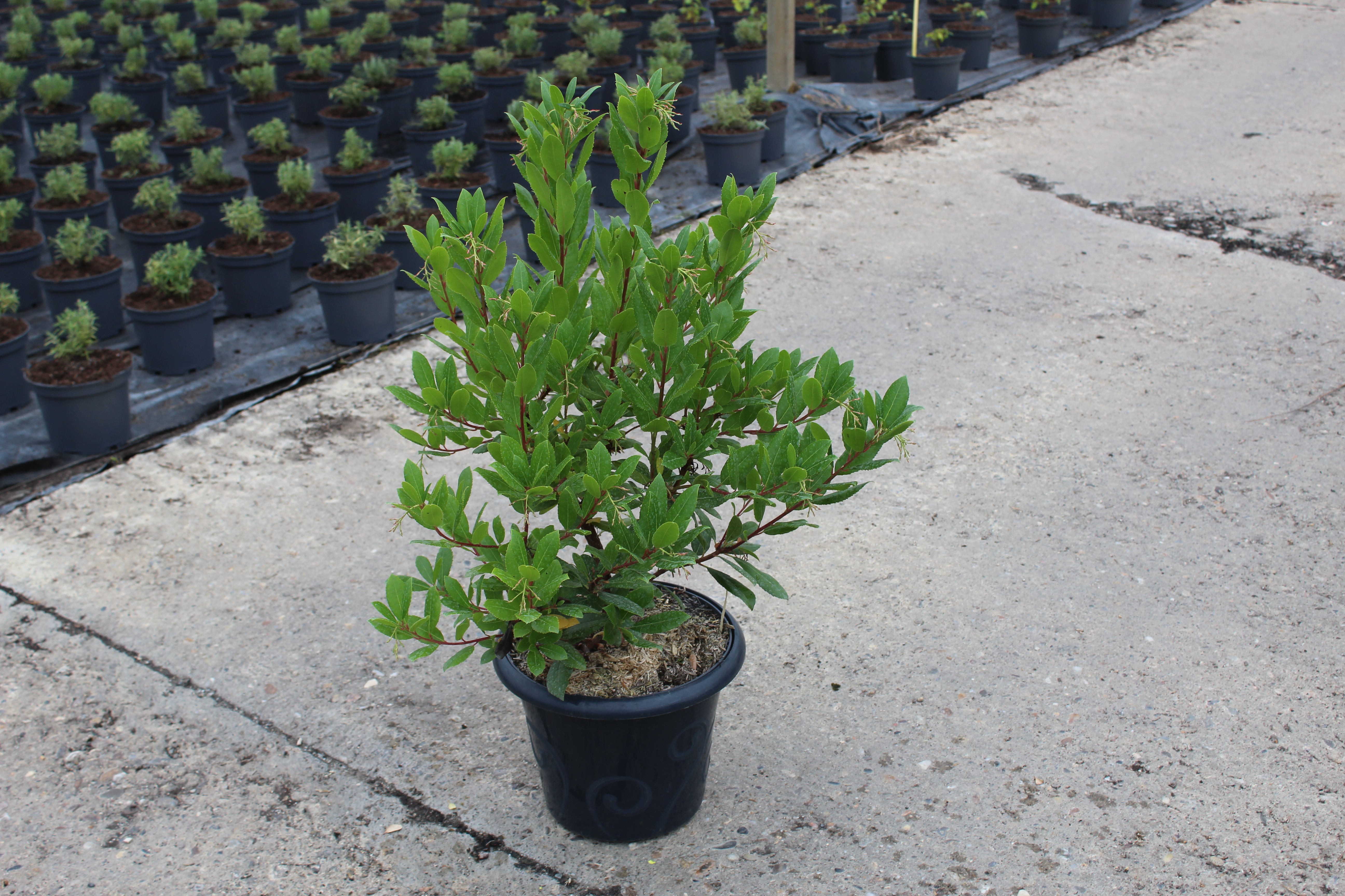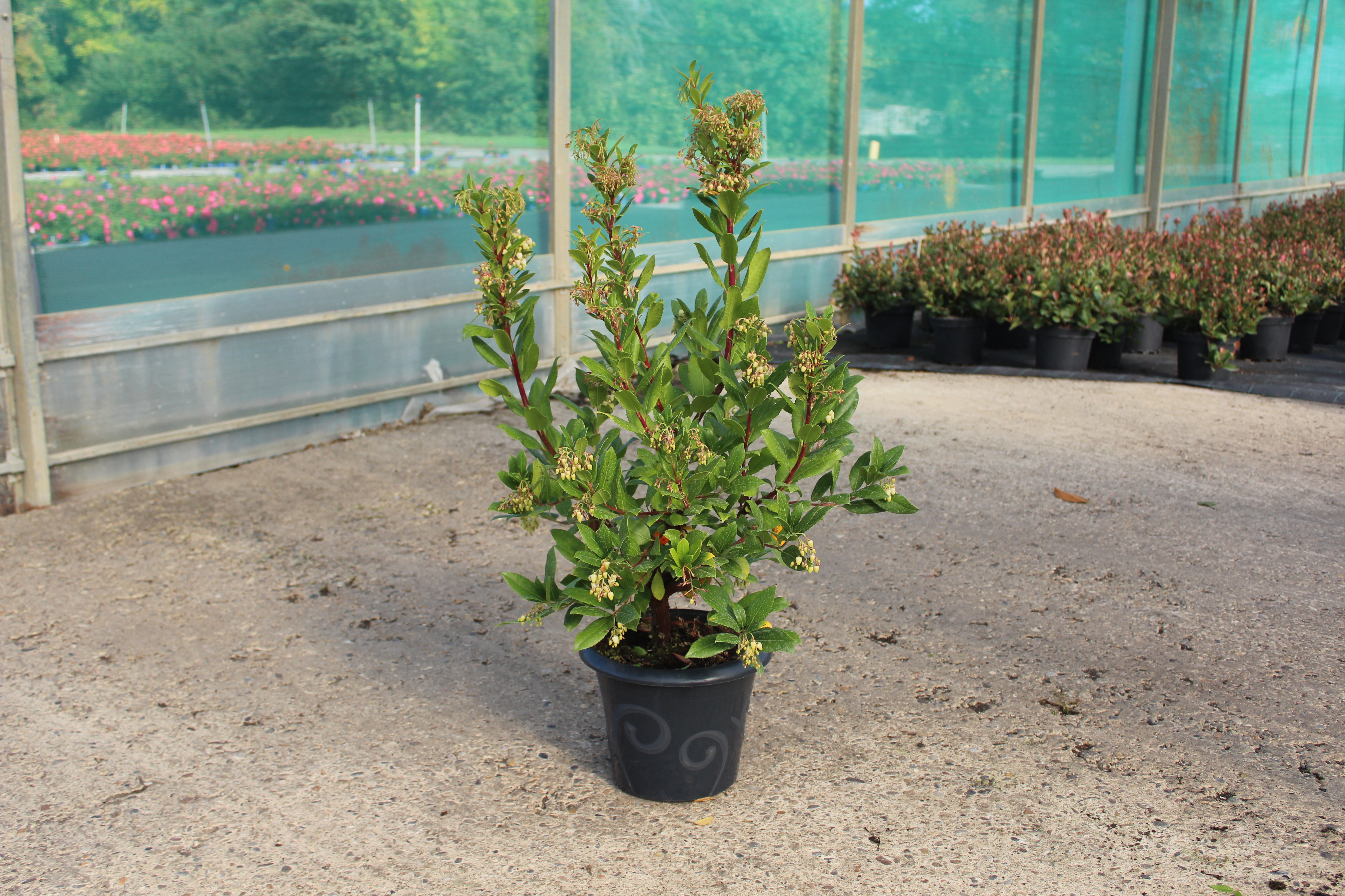 Cet arbousier, de la famille des Ericacées, peut atteindre une hauteur de 3 à 5 mètres. Il possède des feuilles vertes, allongées, légèrement dentées et brillantes qui ajoutent un aspect luxuriant et élégant à son port buissonnant. Au début de l’automne, l’arbousier se pare de grappes de fleurs blanches ou rosées en forme de clochettes, rappelant celles des bruyères. Le contraste entre le feuillage vert foncé et les fleurs délicates est particulièrement décoratif, ajoutant une touche de lumière dans le jardin.