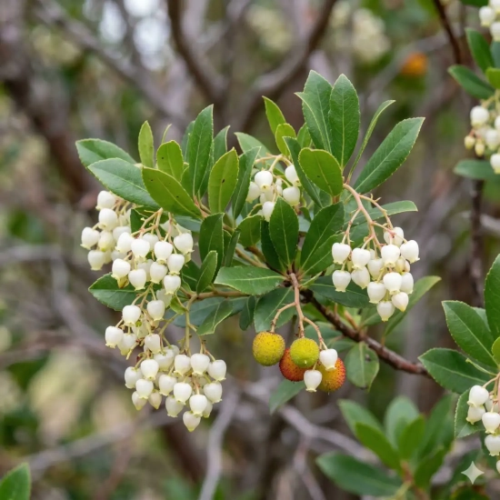 Véritable merveille de la nature, il porte cette délicate floraison rosée exactement en même temps que ses fruits (les arbouses) de l'année précédente arrivent à maturité, passant du jaune au rouge écarlate. Ce double spectacle automnal, contrastant avec son écorce brun-rouge qui s'exfolie avec élégance, est d'ailleurs idéalement mis en valeur par des photographies au format carré, parfaites pour illustrer son port harmonieux sur votre catalogue en ligne. Découvrez notre collection complète d'Arbousiers (Arbres aux fraises) sur ma-pepiniere.fr.