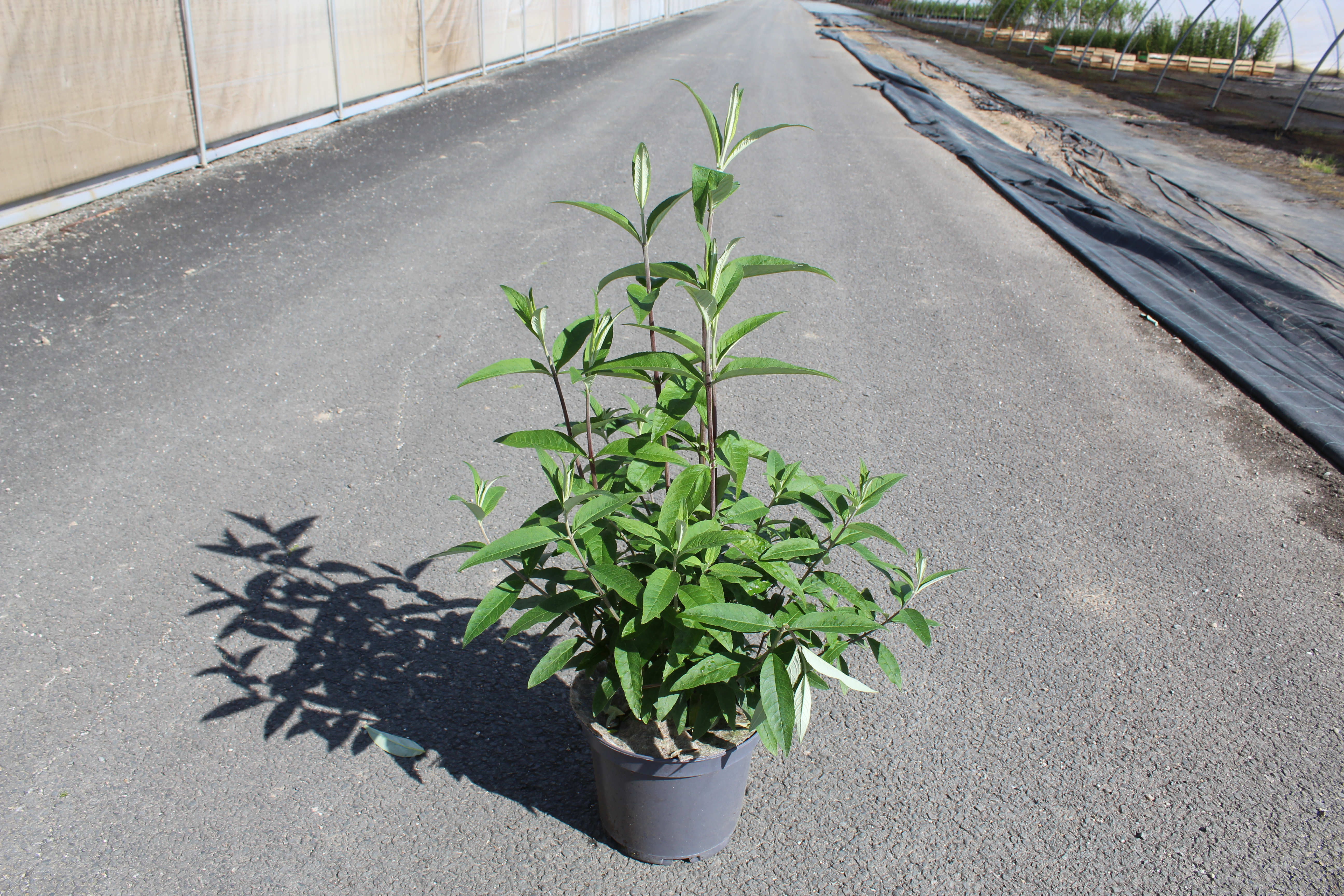 Pour un développement optimal, plantez votre Buddleia davidii 'Royal Red' entre la mi-mars et la mi-mai, dans un sol léger et bien drainé. Préparez le terrain en améliorant sa structure avec du compost ou du terreau si nécessaire. Évitez les sols argileux lourds qui retiennent l'eau. En pleine terre, respectez une distance de 60 à 80 cm entre chaque plante dans un massif, ou 1 à 2 mètres si vous souhaitez l'installer en isolé. N'oubliez pas d'appliquer un paillage de 5 à 10 cm pour préserver l'humidité et limiter les mauvaises herbes.