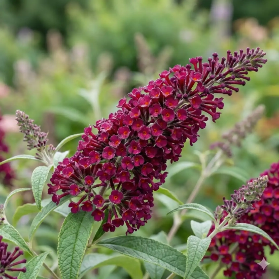 Floraison : Le Buddleia 'Buzz Wine' produit de longues grappes de fleurs rouge-pourpre, de juillet jusqu'à octobre. Sa floraison généreuse attire papillons et abeilles, ce qui en fait une excellente option pour les jardins écologiques.