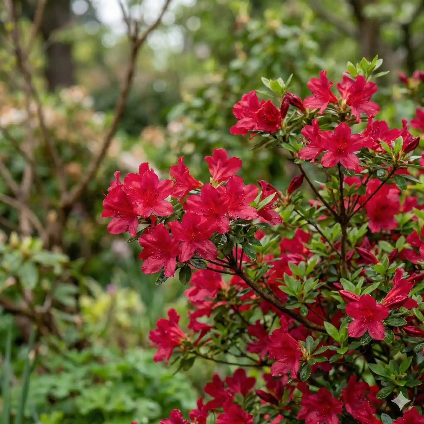Cette azalée à la couleur éclatante est parfaite pour structurer et illuminer les zones de sous-bois :