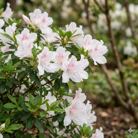 L'Azalée japonaise 'Starlite' est un arbuste d'ornement d'une élégance rare, appartenant à la prestigieuse famille des azalées remontantes (gamme Encore). Elle bouleverse le rythme traditionnel du jardin en offrant non pas une, mais deux floraisons généreuses par an ! Au cœur du printemps, puis à nouveau de la fin de l'été jusqu'à l'automne, elle se couvre de grandes fleurs d'un blanc pur et lumineux, délicatement rehaussées de fines nervures rose pastel et de légères mouchetures saumonées en leur centre.