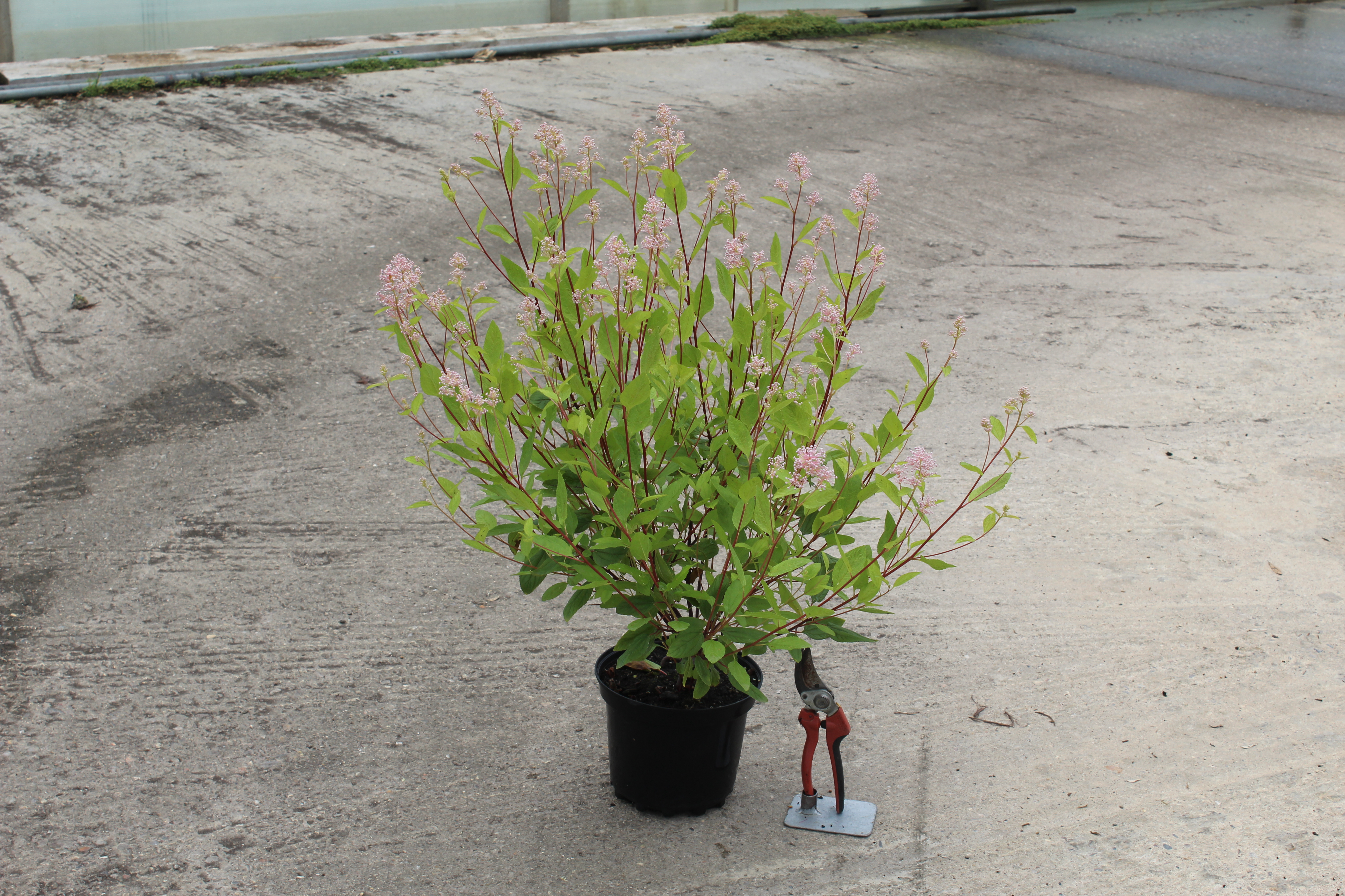 Originaire des régions côtières et des zones ensoleillées d'Amérique du Nord, le Ceanothus pallidus ‘Marie Simon’ est un hybride qui atteint environ 1,2 à 1,5 mètre de hauteur. Son port est dense et buissonnant, formant une belle silhouette arrondie qui s'intègre facilement dans de nombreux aménagements paysagers. Cet arbuste se distingue par des rameaux légèrement teintés de rouge, ce qui ajoute un contraste subtil avec ses feuilles vert foncé. Sa floraison, qui débute au début de l'été et peut se prolonger jusqu'au début de l’automne, est particulièrement abondante, avec des panicules de petites fleurs rose clair, qui attirent papillons et abeilles.
