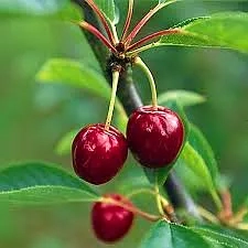 Les fruits du Cerisier 'Griotella' sont de taille moyenne, avec une peau noire brillante et une chair ferme. Leur texture croquante et leur saveur sucrée en font des fruits de choix pour tous les amateurs de cerises. Ils atteignent généralement leur maturité à la fin du mois de juin jusqu'à début juillet, et il est conseillé de les récolter dès qu'ils sont bien colorés et fermes. Une récolte précoce peut entraîner un goût moins sucré, il est donc préférable d'attendre que les cerises soient bien développées avant d’effectuer la cueillette.