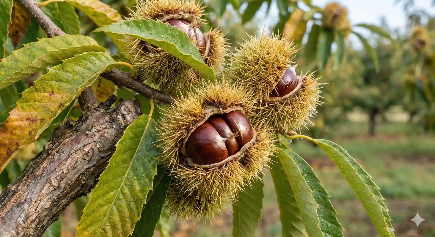 - Période de récolte : en automne, lorsque les bogues s’ouvrent et que les fruits tombent au sol
