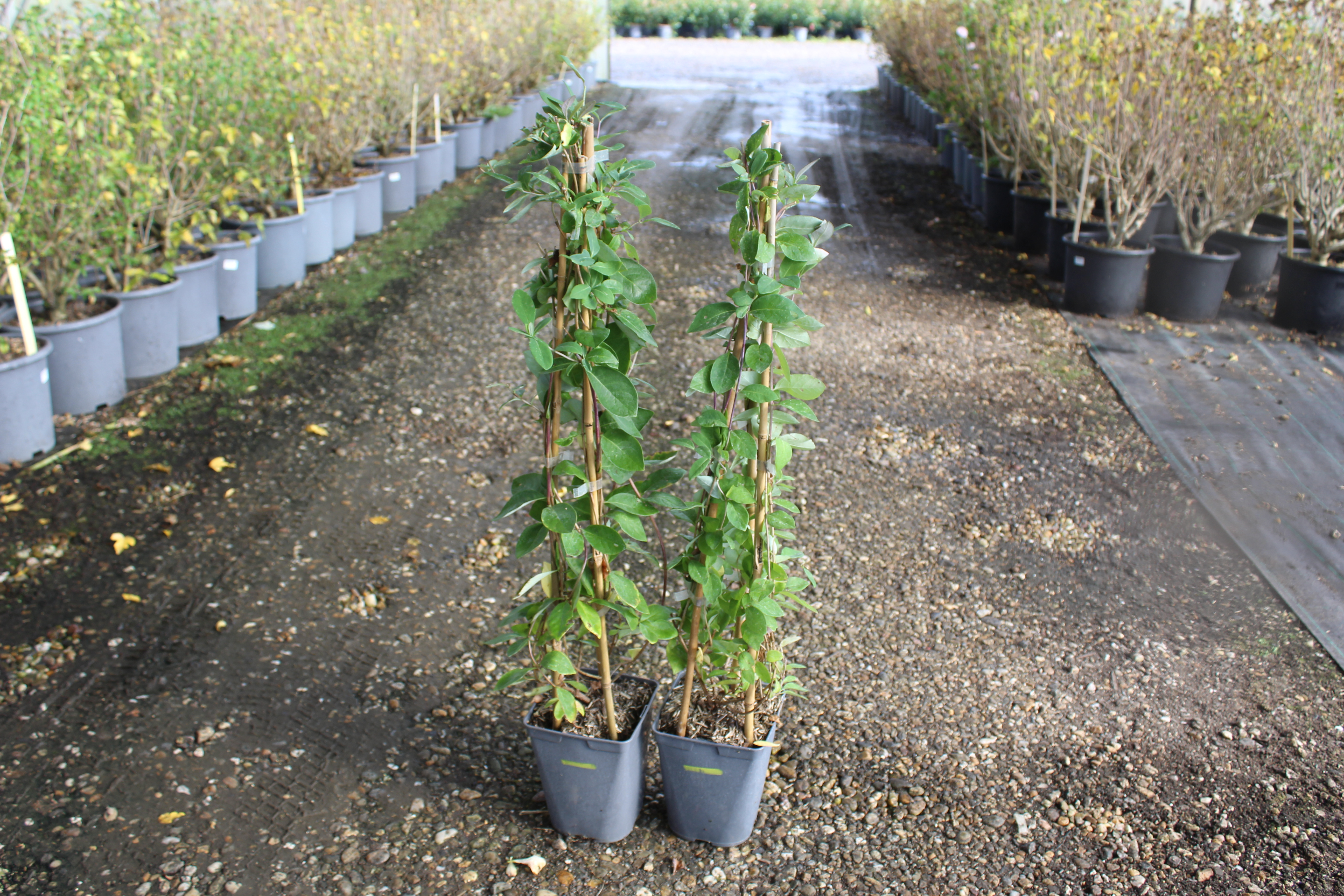 Le chèvrefeuille grimpant 'Gold flame' possède des feuilles persistantes, ovales et d'un vert éclatant, qui apportent une touche de fraîcheur tout au long de l'année. Sa croissance rapide lui permet de couvrir rapidement les treillis, les murs, les clôtures ou tout support vertical. En plus de son aspect décoratif, cette plante peut atteindre une hauteur de quatre à six mètres, faisant d'elle un choix idéal pour créer des écrans de verdure ou ombrager des espaces ensoleillés. Les tiges du chèvrefeuille grimpant 'Gold flame' sont flexibles et capables de s'accrocher à divers supports à l'aide de leurs organes de fixation, les ventouses.