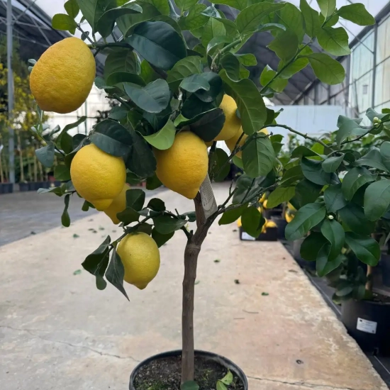 Faisant partie de la grande famille des citronniers des 4 saisons (type Femminello), il est hautement productif et très remontant. Il offre tout au long de l'année, avec un pic en hiver et au printemps, de magnifiques citrons jaunes poussant souvent en généreuses grappes. Le contraste de ses fleurs pourprées, de ses fruits lumineux et de son feuillage persistant est d'ailleurs idéalement mis en valeur par des photographies au format carré, parfaites pour illustrer sa beauté sur votre catalogue. Découvrez notre collection complète de Citronniers Jaunes sur ma-pepiniere.fr.