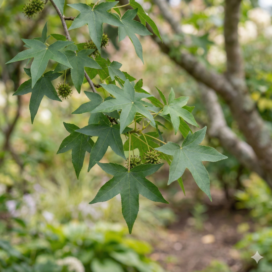 Le Copalme d'Amérique 'Pasqualli' (Liquidambar styraciflua) est un arbre d'ornement d'exception, recherché par les paysagistes pour son double intérêt visuel. Il se distingue par son écorce profondément crevassée, ornée de crêtes liégeuses spectaculaires, et par ses feuilles étoilées qui offrent l'un des plus beaux spectacles automnaux du règne végétal.