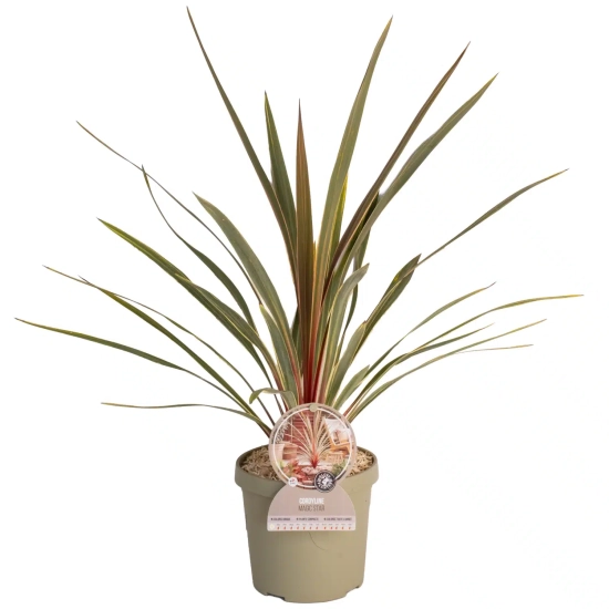 La Cordyline 'Magic Star' (Cordyline australis) est une plante architecturale d'exception, plébiscitée pour ses couleurs vibrantes et son port exotique. Contrairement aux variétés classiques, elle arbore de longues feuilles rubanées au coloris fascinant : un centre vert bronze et pourpre, finement strié de rose fuchsia et de blanc crème. Véritable point focal, elle apporte une verticalité immédiate et une touche d'exotisme moderne aux jardins comme aux terrasses urbaines.
