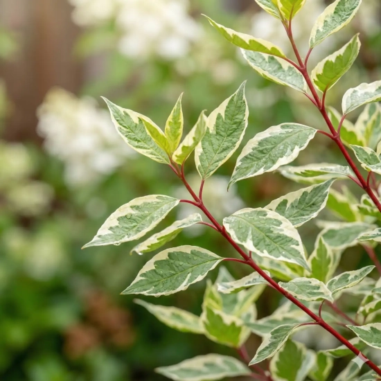 Le Cornouiller 'Elegantissima' (Cornus alba) est l'arbuste indispensable pour éclairer les zones d'ombre. Son feuillage, marginé de blanc-argenté, capte la moindre parcelle de lumière et donne une impression de fraîcheur, même en plein mois d'août.