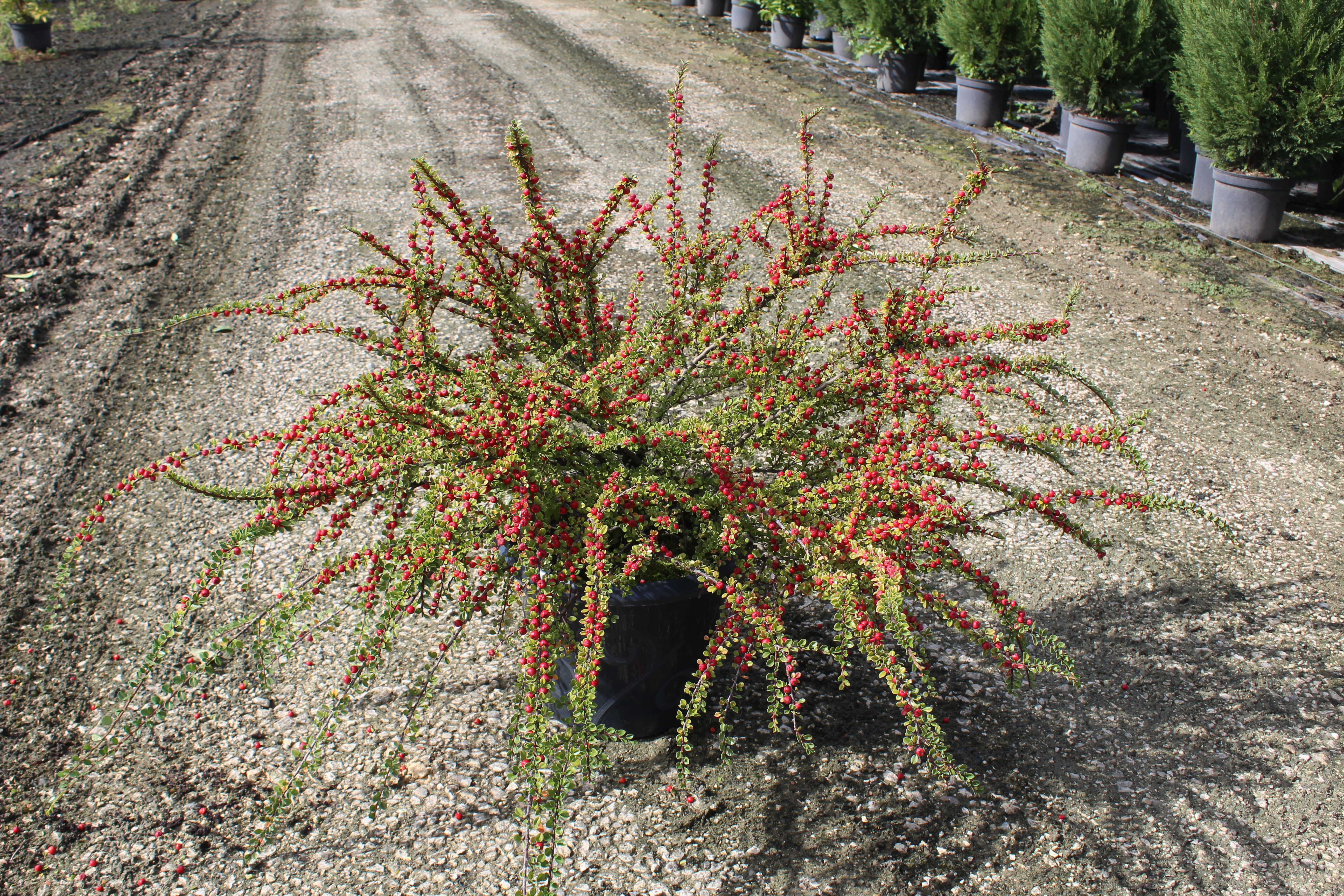 Cotoneaster horizontalis, également connu sous le nom de Cotonéaster étalé, est un arbuste caduc qui attire l’attention avec son port étalé, ses petites feuilles ovales et ses baies rouges éclatantes en automne. Originaire des régions montagneuses de Chine, cet arbuste est particulièrement apprécié pour sa polyvalence dans les jardins, que ce soit en tant que couvre-sol, haie basse ou élément décoratif dans un jardin de rocaille. Voir tous nos Cotoneaster