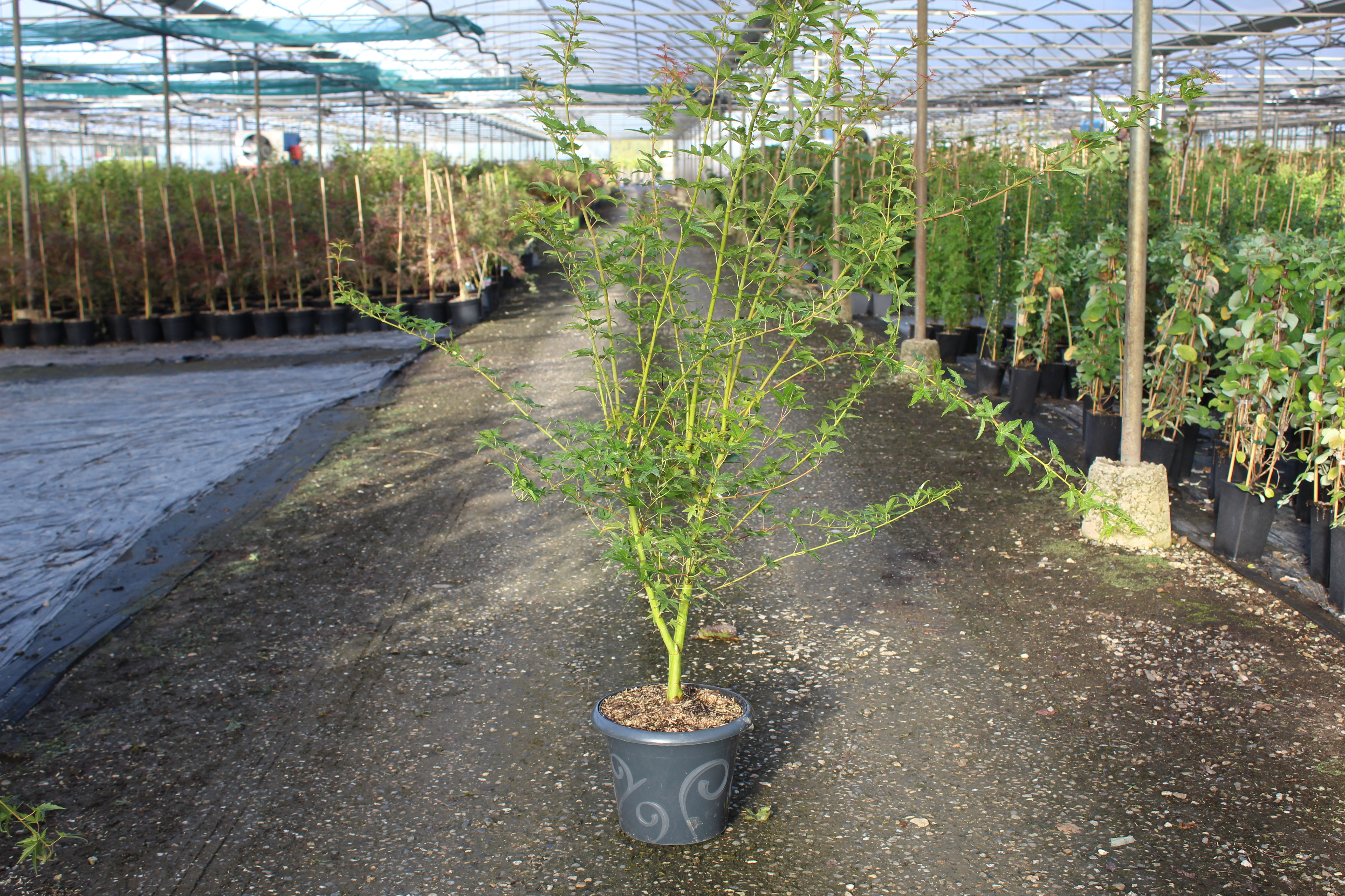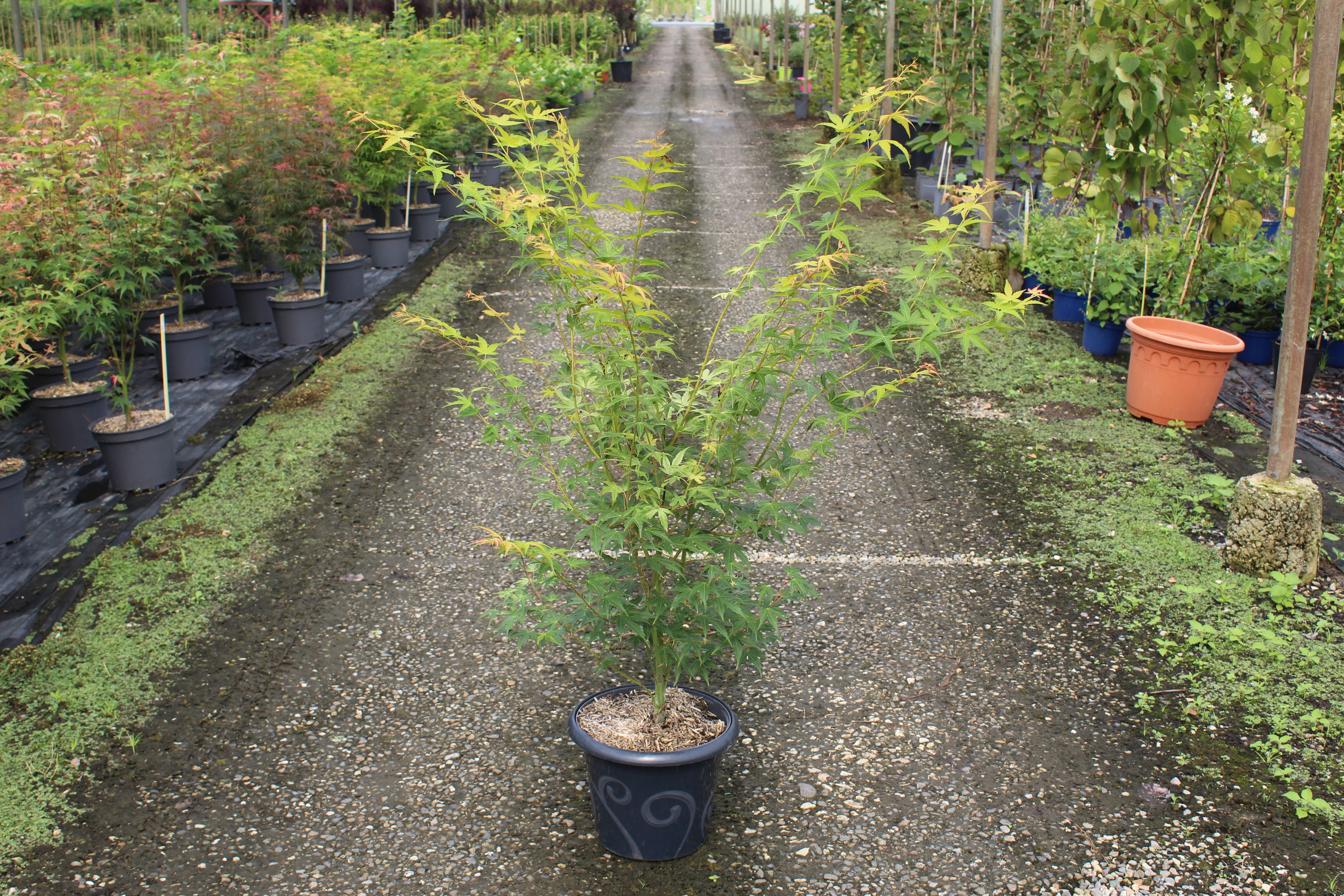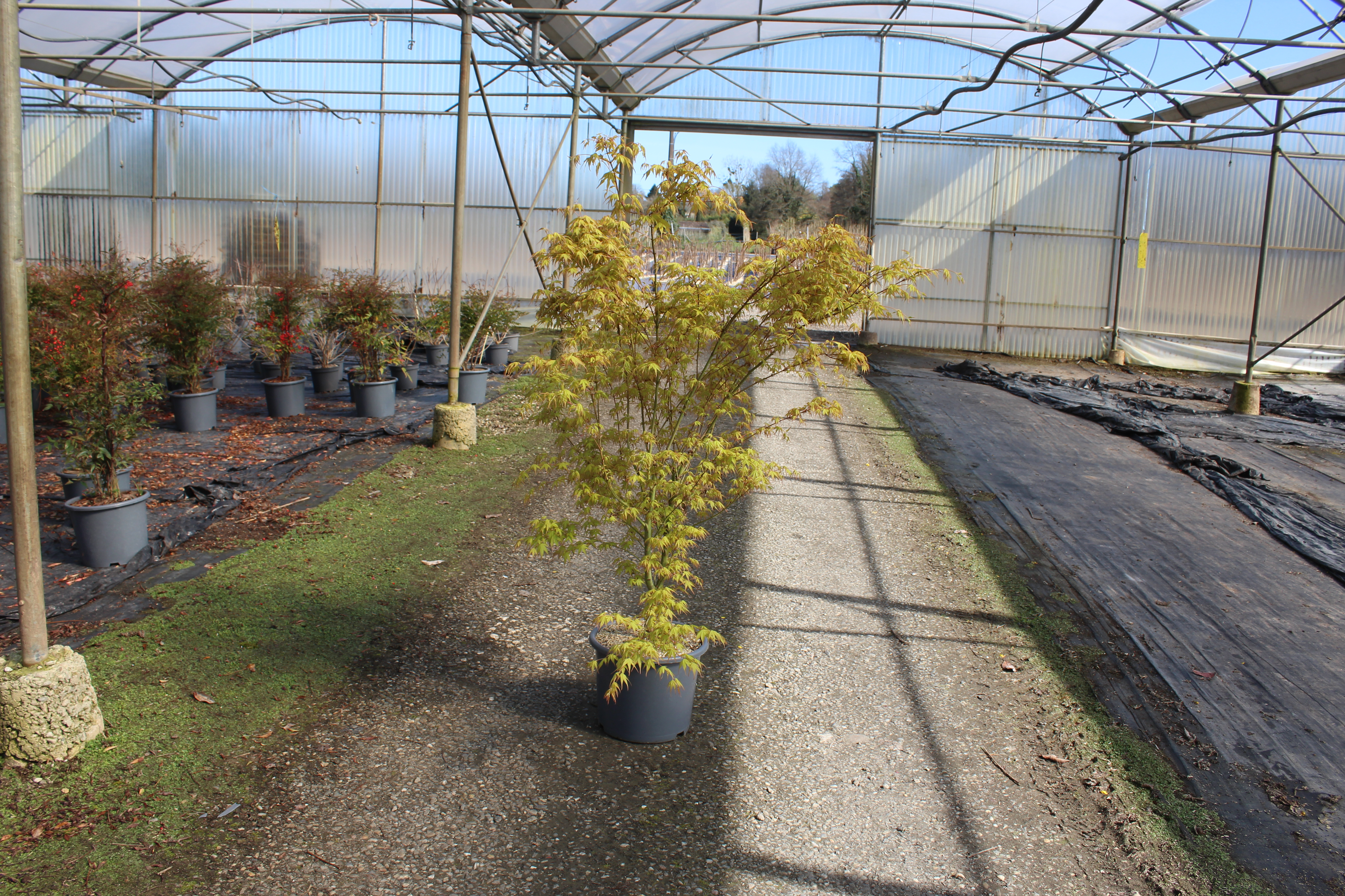 L'Érable du japon 'Katsura' est un arbre ornemental prisé pour sa beauté et son élégance. Ce cultivar d'érable est particulièrement apprécié pour son port gracieux et son feuillage délicat. Il présente une forme arrondie, ce qui en fait un excellent choix pour le jardin, les parcs ou en tant qu'arbre solitaire. Cet érable peut atteindre une hauteur de 3 à 5 mètres, avec un étalement similaire, offrant ainsi une belle masse de verdure. Le feuillage de l'Érable du japon 'Katsura' est composé de feuilles palmatilobées, d'une couleur verte lumineuse au printemps qui se transforme en un spectre de jaunes et d'oranges éclatants à l'automne.
