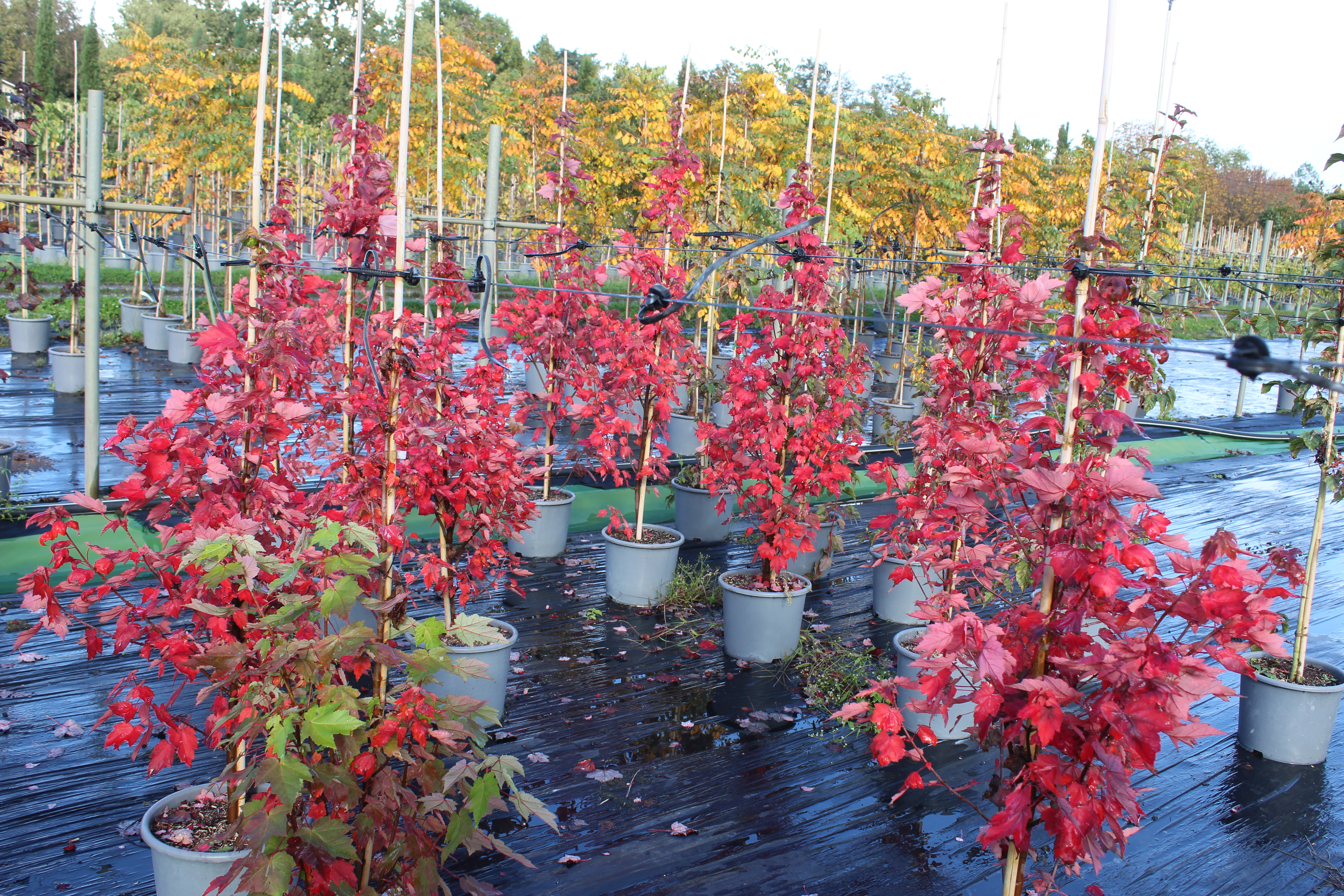 L'Érable rouge 'Brandywine' s'intègre parfaitement dans divers styles d'aménagement paysager, qu'il s'agisse d'un jardin moderne, d'un aménagement traditionnel ou même d'un espace urbain. Sa stature imposante et sa largeur peuvent créer des points d'ancrage dans les grands espaces, tandis que les petits jardins peuvent bénéficier de son port élancé qui ne surcharge pas visuellement l'espace. Il peut être planté en isolé ou en groupes pour former des haies ou des écrans naturels, apportant ainsi une certaine intimité. De plus, cet arbre est souvent utilisé dans les parcs et les jardins publics grâce à sa robustesse et à son attrait esthétique. Pour ajouter une dimension supplémentaire à votre aménagement, envisagez de le combiner avec des plantes vivaces et des fleurs qui complémentent son feuillage.