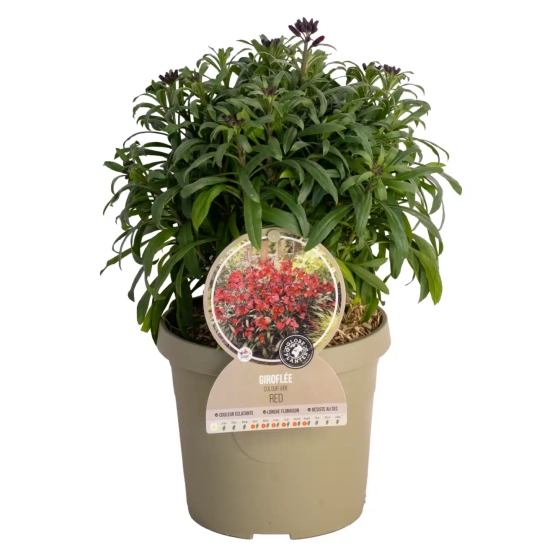 Erysimum 'Red' s'avère être un excellent choix pour ajouter de la couleur à vos massifs vivaces, en bordures ou même en pots sur une terrasse ensoleillée. Sa floraison printanière attire les pollinisateurs et favorise la biodiversité. Idéale pour créer des points focaux, elle se marie parfaitement avec des plantes compagnes comme la lavande ou le thym, qui partagent des besoins similaires en soleil et en sol. Pensez à l'associer à des graminées pour un contraste de textures ou à des fleurs d’asters pour une floraison décalée. Idéal associé au Oreille D Elephant Colocasia Esculenta et au Echeveria Giant Blue Echeveria Gigantea Giant Blue pour composer un décor cohérent au fil des saisons.