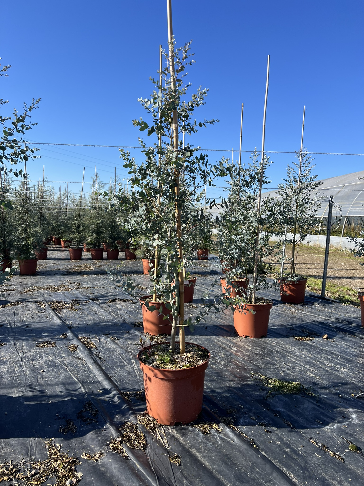 L'Eucalyptus à feuilles rondes 'Sylverana' se caractérise surtout par ses feuilles décoratives qui sont d’un vert intense, parfois teintées de nuances argentées. Ces feuilles présentent également une texture douce et veloutée, ce qui en fait une plante très agréable au toucher. Ces caractéristiques font de l'Eucalyptus à feuilles rondes 'Sylverana' une plante idéale pour des compositions florales ou des arrangements paysagers. En termes de taille, l'Eucalyptus à feuilles rondes 'Sylverana' peut atteindre une hauteur impressionnante de plusieurs mètres, ce qui le rend parfait pour servir d'élément vertical dans un jardin. Son port érigé et son feuillage dense lui confèrent une allure majestueuse. De plus, ce type d'Eucalyptus est connu pour sa croissance rapide, ce qui permet d’en profiter assez rapidement après la plantation.