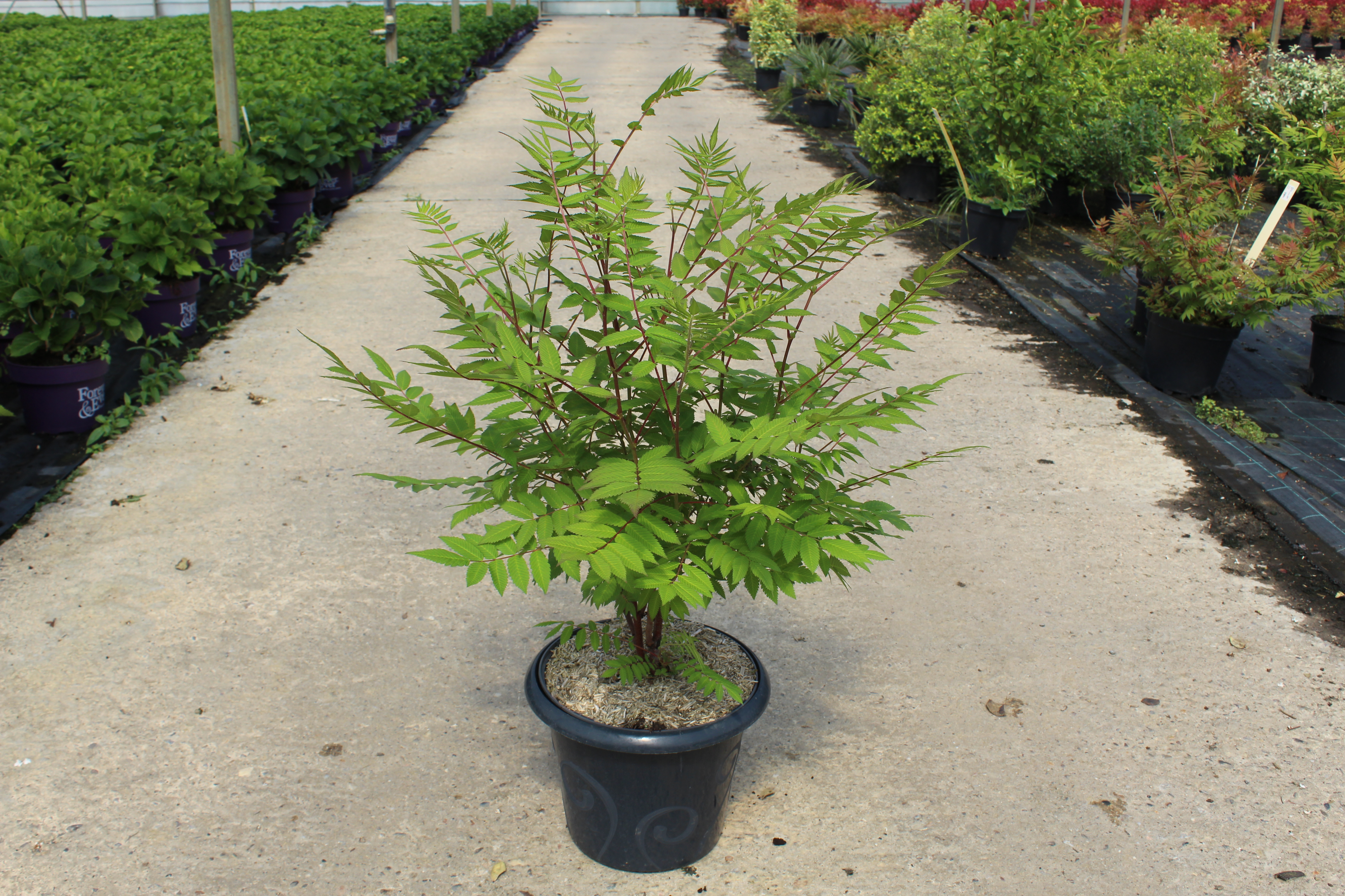 La Fausse spirée à feuilles de sorbier 'Sem' est extrêmement polyvalente et peut être utilisée dans de nombreuses compositions paysagères. Qu'il s'agisse d'un massif, d'une haie ou d'une isolation, ses caractéristiques lui permettent de s'intégrer harmonieusement à tous les styles de jardins. Elle se marie particulièrement bien avec d'autres plantes à feuillage décoratif et avec des fleurs de couleurs vives, créant ainsi un contraste saisissant. En outre, sa forme érigée lui permet de servir de toile de fond à d'autres variétés de fleurs.