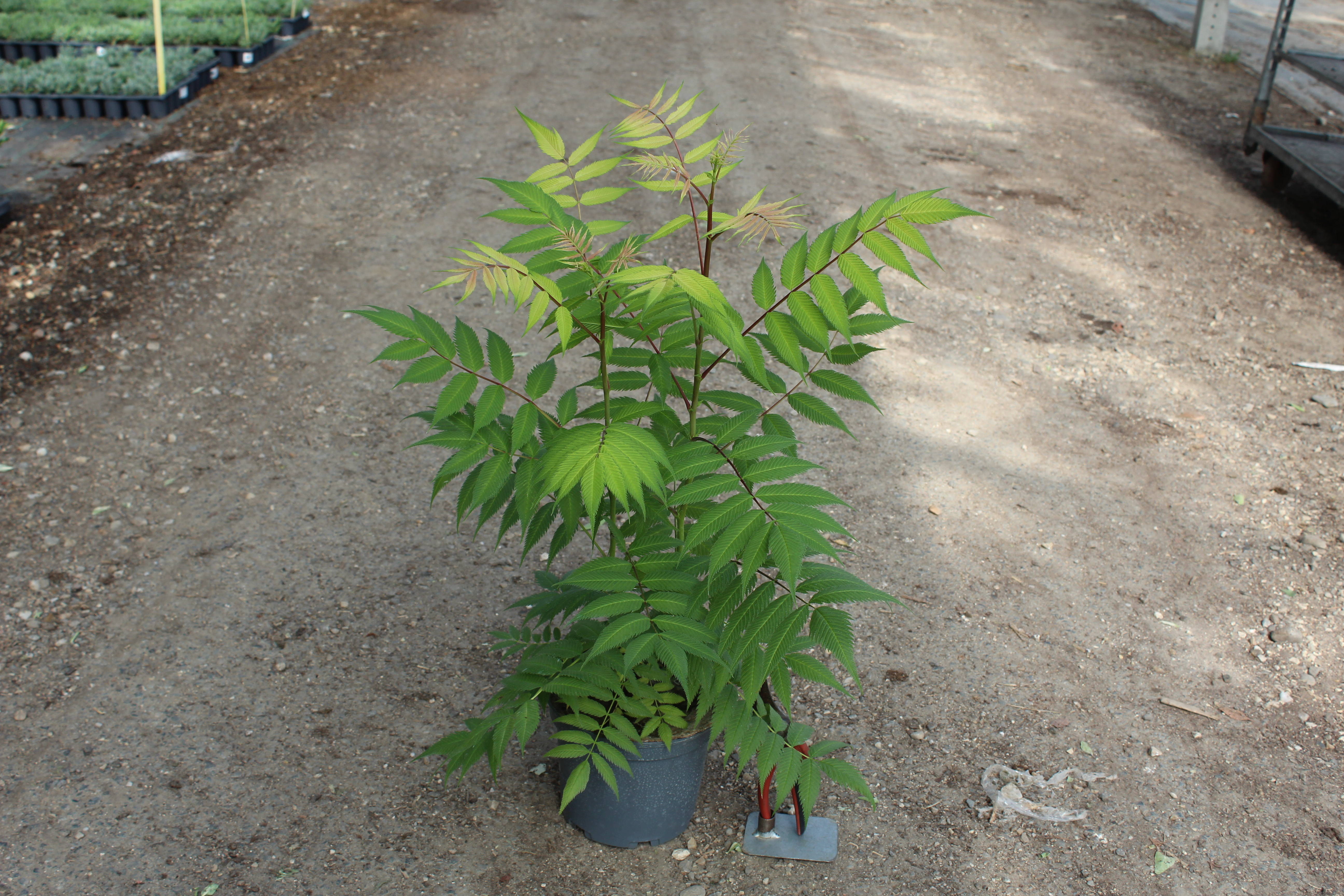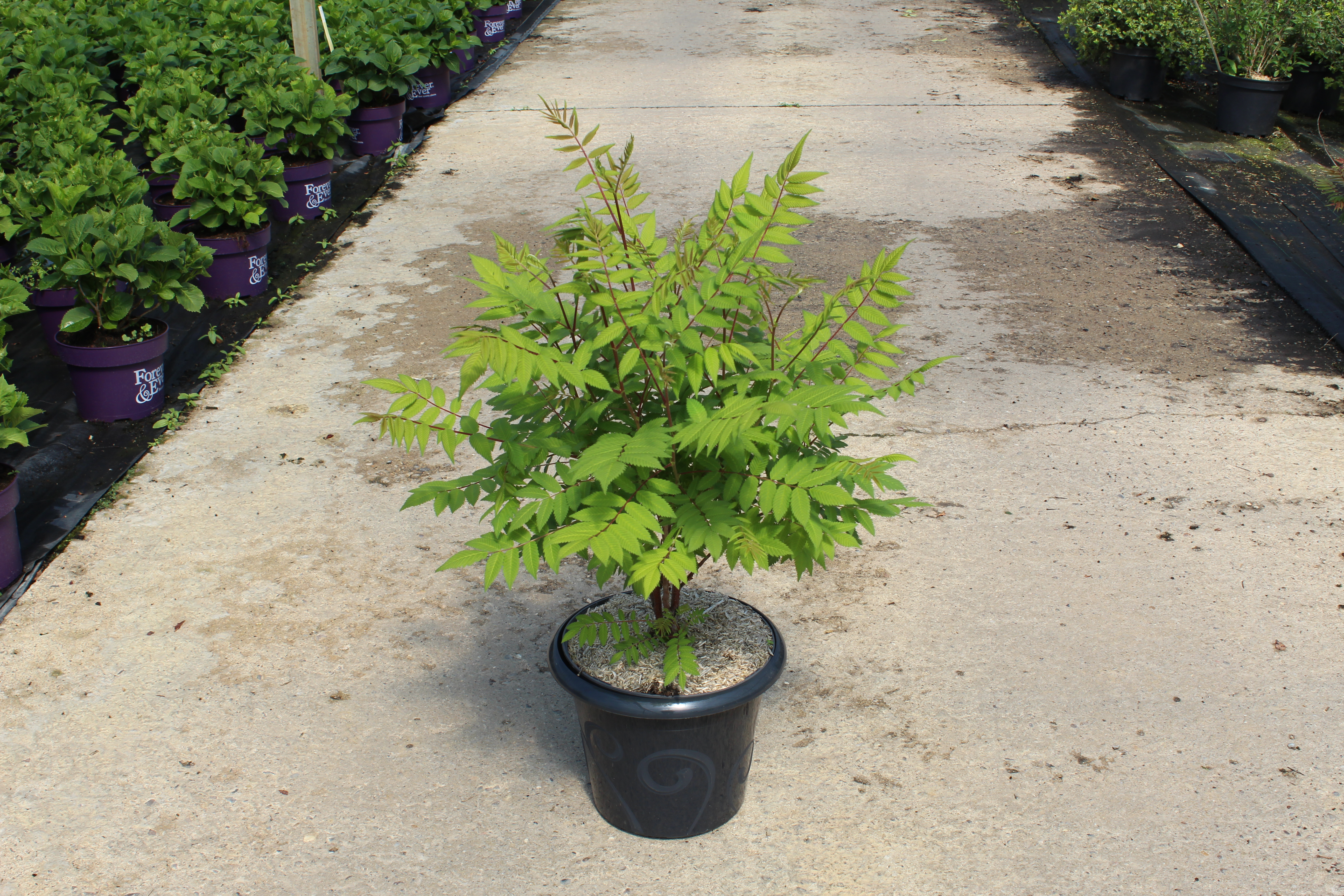 La Fausse spirée à feuilles de sorbier 'Sem' est une plante particulièrement rustique qui s'adapte à de nombreuses conditions de sol. Elle préfère les sols bien drainés, mais peut également tolérer des sols plus argileux ou sablonneux. Un emplacement en plein soleil ou à mi-ombre favorise son développement et sa floraison. La plante est également assez résistante à la sécheresse une fois établie, ce qui en fait un choix idéal pour les jardins nécessitant peu d'entretien.