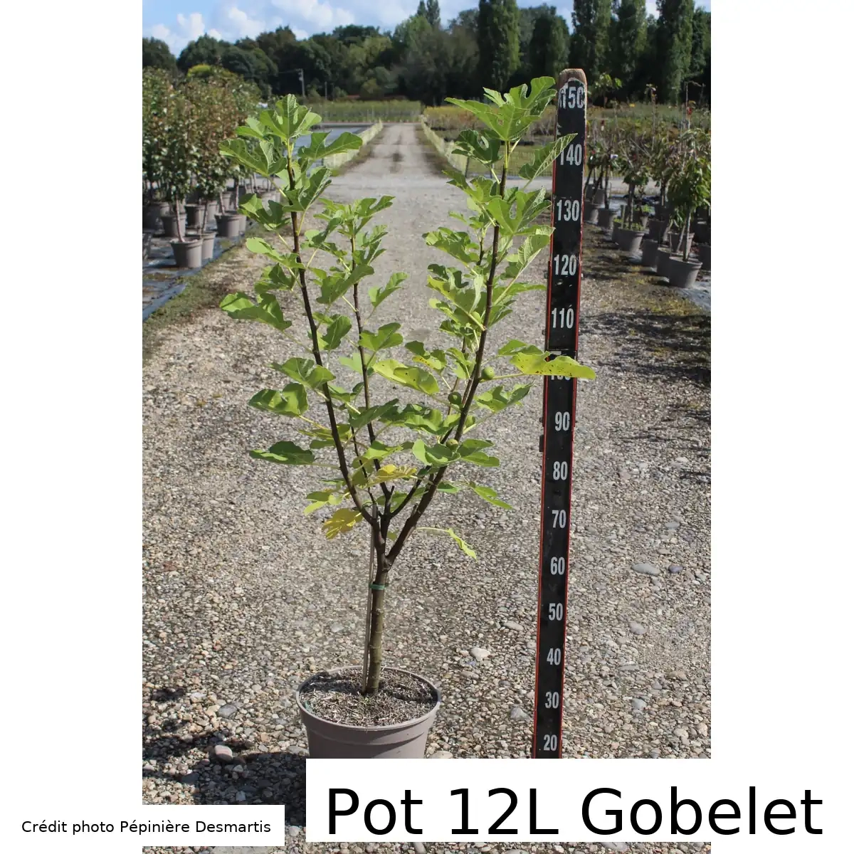 Le figuier 'Brown Turkey' (Ficus carica) est un arbre fruitier robuste et productif, apprécié pour ses figues de taille moyenne à la peau brun-violet et à la chair rougeâtre, douce et juteuse. Adapté aux climats tempérés et méditerranéens, il tolère les températures froides et les périodes de sécheresse. Facile à cultiver, il nécessite une exposition ensoleillée, un sol bien drainé et une taille annuelle. Ses fruits délicieux peuvent être consommés frais, séchés ou utilisés en cuisine, et sont riches en vitamines et antioxydants.