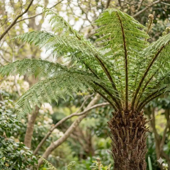 La Fougère arborescente (Dicksonia antarctica) est une plante architecturale d'exception, véritable survivante de l'ère préhistorique originaire des forêts humides d'Australie et de Tasmanie. Elle se distingue par son spectaculaire "tronc" fibreux (appelé stipe) couronné d'une majestueuse rosette de frondes vert émeraude, immenses et finement découpées, pouvant atteindre plus de 2 mètres de long. Son allure sculpturale insuffle instantanément une atmosphère de jungle luxuriante et de fraîcheur absolue à votre jardin.