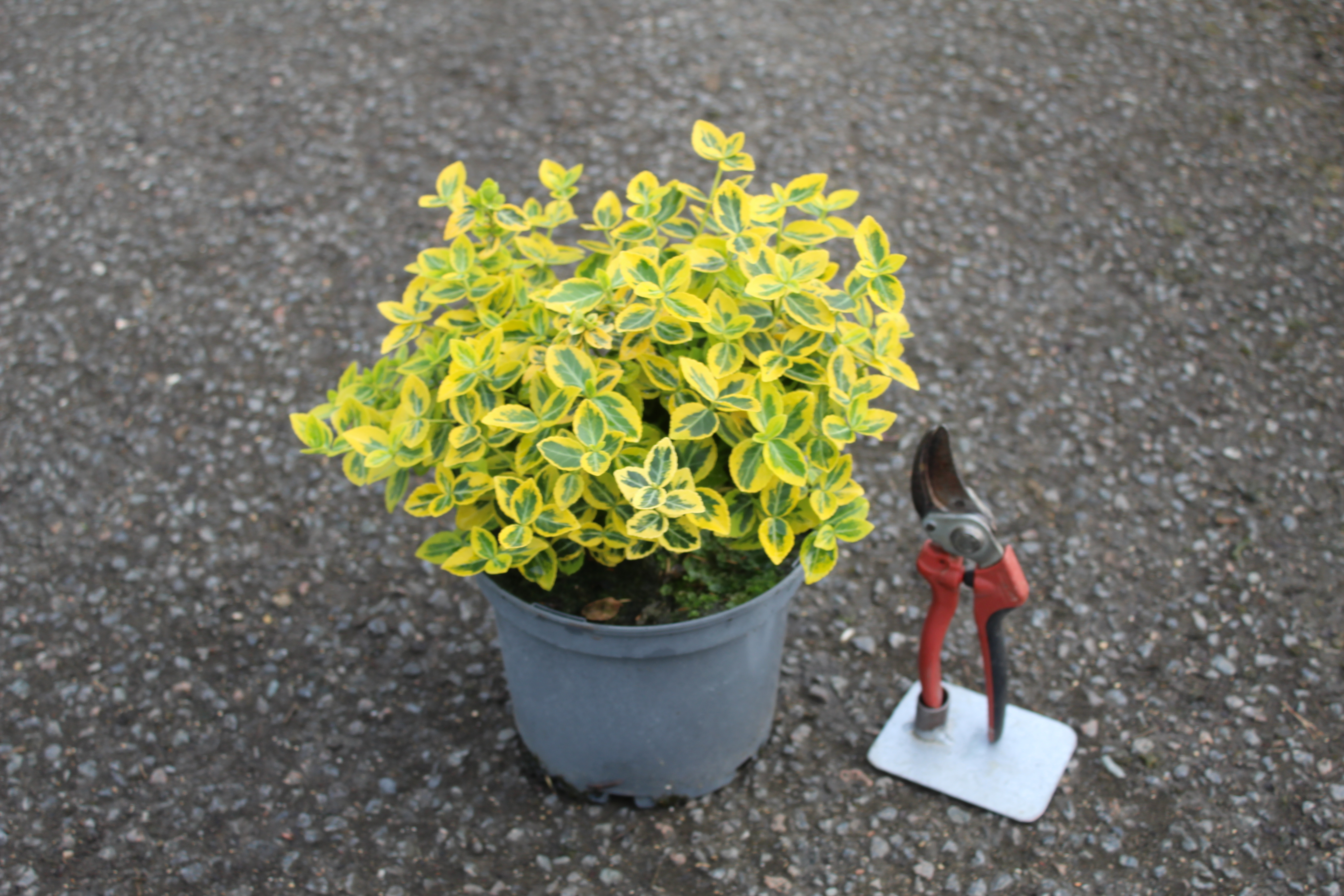 Le Fusain de fortune 'Emerald n gold' mesure généralement entre 1 et 1,5 mètre une fois pleinement mature, ce qui le rend adapté pour les petits et grands jardins. Il se développe sous la forme d'un arbuste compact et dense, parfait pour créer des haies ou des bordures. Son port arrondi et sa stature modeste lui permettent de s'intégrer harmonieusement dans divers styles de jardinage, qu'il soit contemporain ou plus traditionnel.