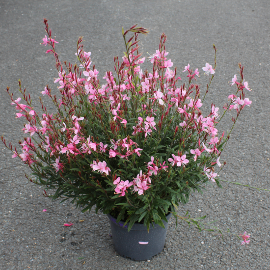 Pour la Gaura 'Siskiyou Pink', l'entretien est minimal. En pleine terre, un arrosage régulier est essentiel durant les 2 à 3 premières années pour établir les racines. Une fois la plante bien établie, elle tolère des périodes de sécheresse, mais un arrosage modéré sera bénéfique durant les chaleurs estivales. En pot, le substrat sèche rapidement, nécessitant des arrosages plus fréquents.