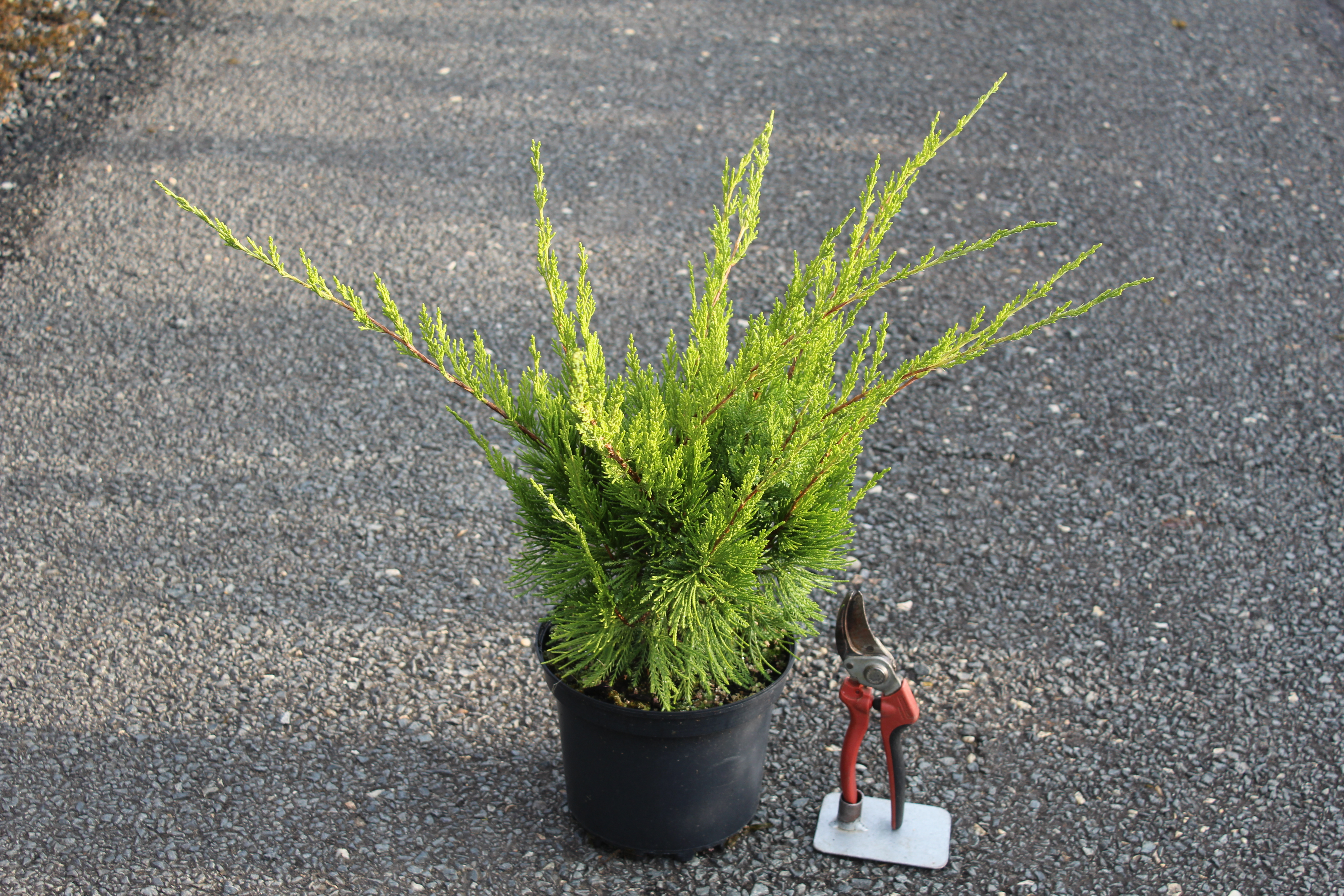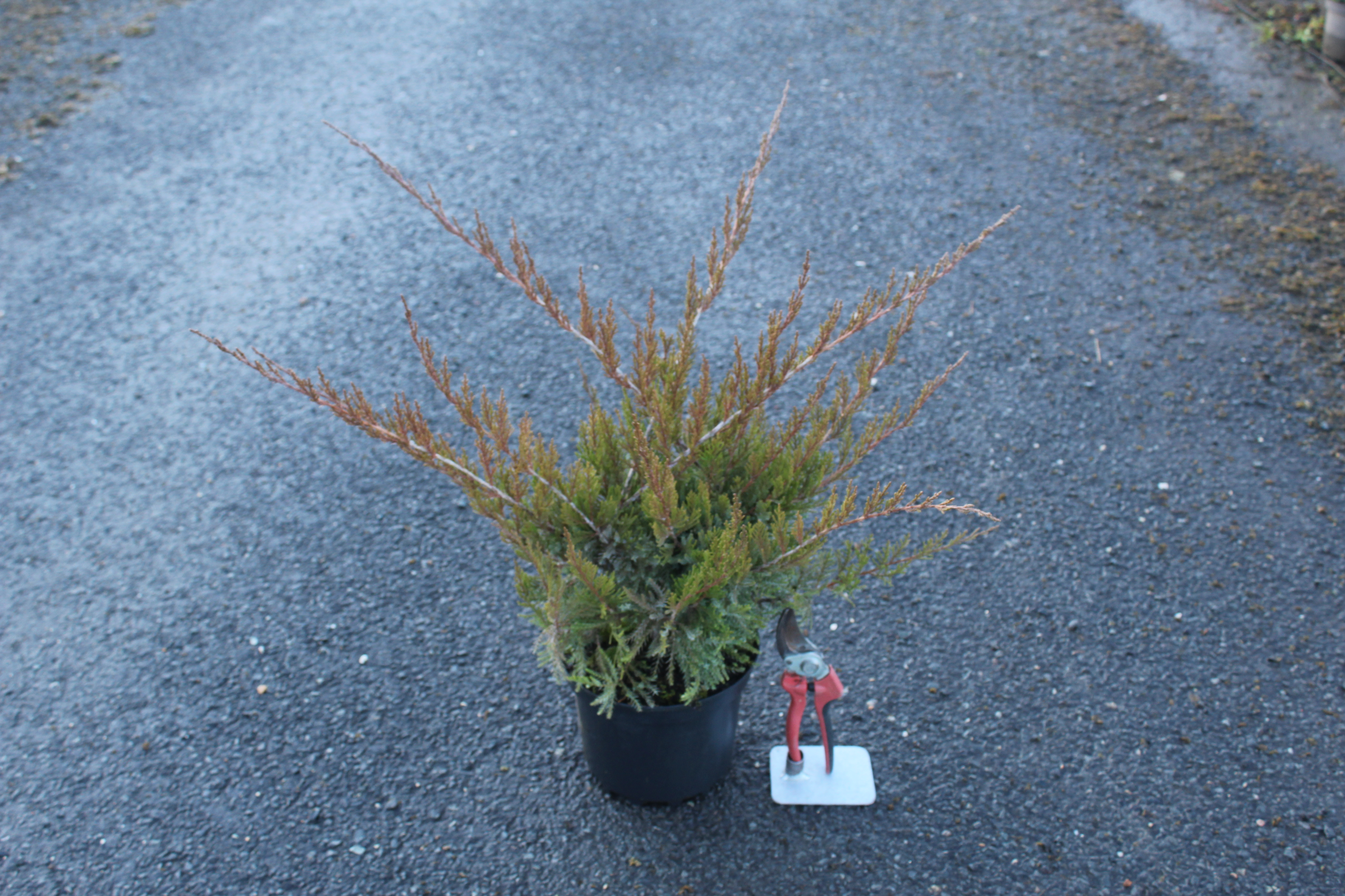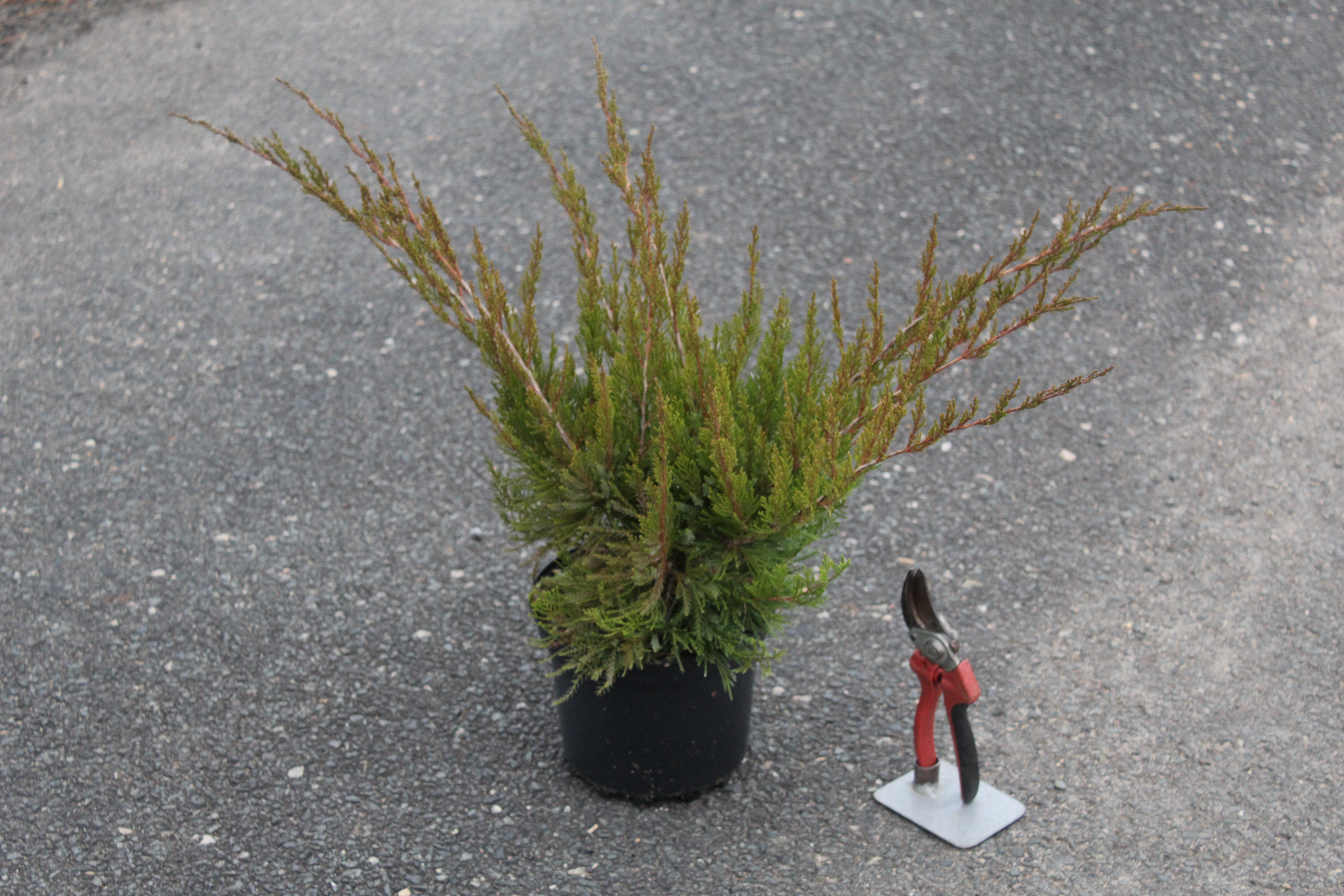 Le Genévrier 'Mint julep' nécessite peu d'entretien, ce qui en fait un choix privilégié pour ceux qui recherchent des plantes à faible entretien. Cependant, une taille périodique est conseillée pour maintenir sa forme compacte et favoriser une pousse dense. Cette taille se fait généralement à la fin de l'hiver ou au début du printemps, avant le début de la nouvelle croissance. Il suffit de couper légèrement les extrémités des branches pour encourager le développement de nouveaux bourgeons.Il est également judicieux de surveiller la plante pour déceler tout signe de maladies ou de ravageurs. Bien que le Genévrier 'Mint julep' soit généralement résistant, des insectes comme la cochenille ou les acariens peuvent occasionnellement l'affecter. En cas d'infestation, des traitements naturels ou des insecticides spécifiques peuvent être appliqués pour protéger la santé de la plante.