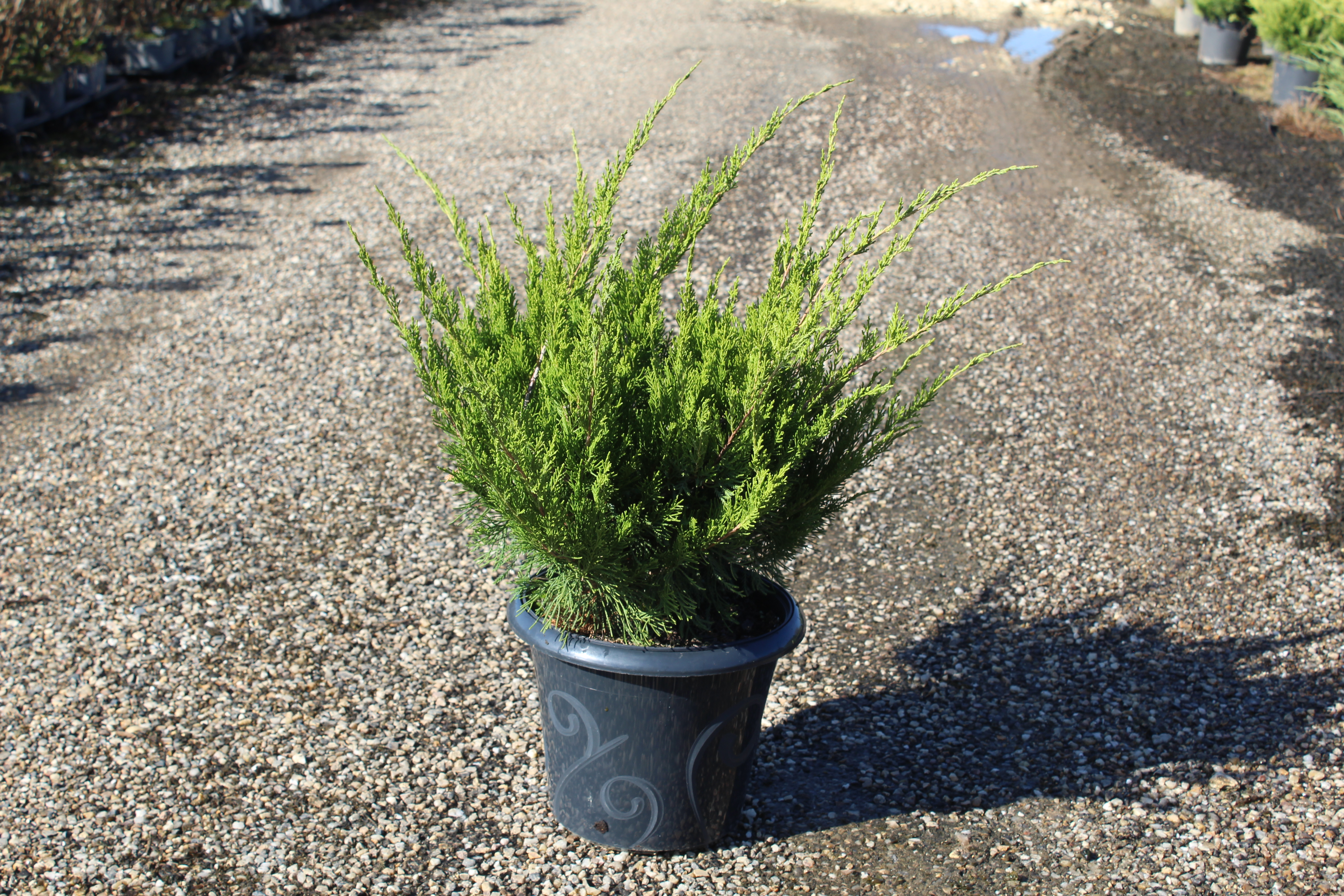 Le Genévrier 'Mint julep' est un arbuste à feuillage persistant qui appartient à la famille des Cupressaceae. Sa croissance est généralement compacte, atteignant une hauteur de 1 à 1,5 mètre et une largeur similaire. Cette plante présente des rameaux souples qui lui confèrent une allure arrondie et harmonieuse. Les aiguilles, d'un vert intense, sont aromatiques et dégagent une odeur agréable, particulièrement lorsque les feuilles sont froissées. Ce caractère aromatique est l'une des raisons pour lesquelles le Genévrier 'Mint julep' est souvent utilisé dans le jardinage et l'aménagement paysager.