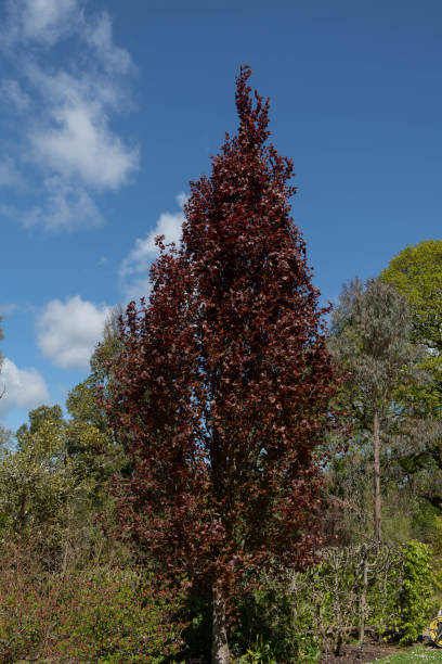 Classique et intemporel, le Hêtre commun a une riche histoire en tant qu'arbre utilisé dans les jardins européens. Le cultivar 'Dawyck purple' a vu le jour grâce à des efforts de sélection soignés, visant à accentuer ses qualités distinctives. De nombreux jardins historiques et parcs arborent encore des spécimens de cette variété, témoignant de son attrait durable au fil des siècles. Sa présence dans les jardins contemporains souligne comment le Hêtre commun 'Dawyck purple' demeure une espèce prisée des jardiniers passionnés d’hier à aujourd'hui.