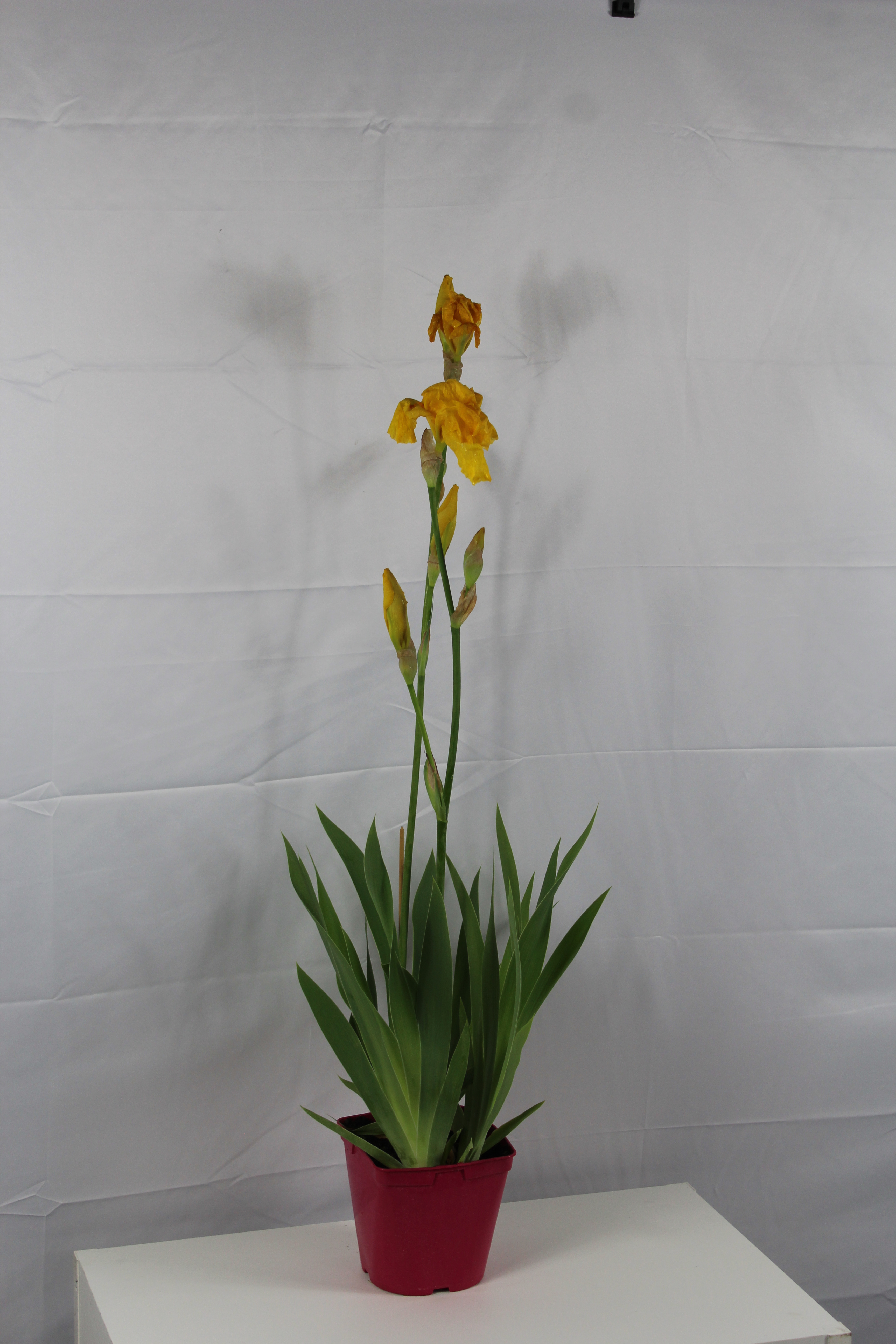 L'Iris d'allemagne 'Ola kala jaune' atteint généralement une hauteur de 70 à 90 cm, avec des feuilles coriaces et rigides qui peuvent arriver jusqu'à 80 cm de long. Ces feuilles sont étroites et légèrement striées, formant un feuillage dense qui s'élève au-dessus du sol. Les fleurs, quant à elles, se composent de grandes pétales, souvent ondulées, qui s'ouvrent en touffes pendant leur période de floraison. La teinte jaune de l'Iris d'allemagne 'Ola kala jaune' est particulièrement chatoyante, et certains pétales peuvent même afficher des nuances dorées, créant un spectacle éblouissant lors de leur éclosion.