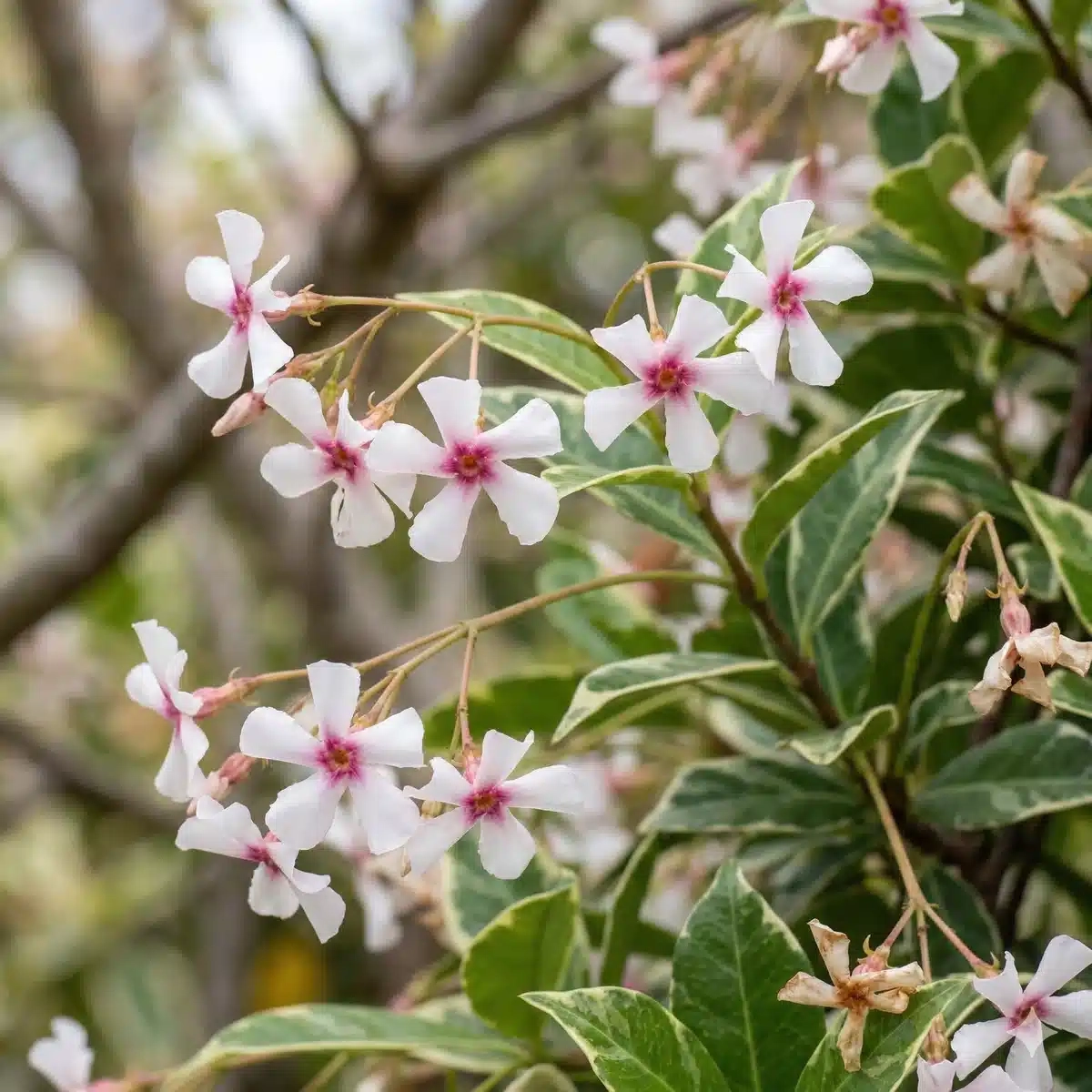 Pour une plantation réussie, plantez le Jasmin étoilé entre avril et juin ou de septembre à octobre, en veillant à choisir une exposition en plein soleil ou en mi-ombre, surtout dans des zones abritées des vents forts. Prévoyez une distance de 1 à 2 mètres entre les plants si vous l’implantez isolément. Il est important d’arroser correctement la plante après la mise en place et d'appliquer un paillage organique de 5 cm autour de la base pour conserver l’humidité.