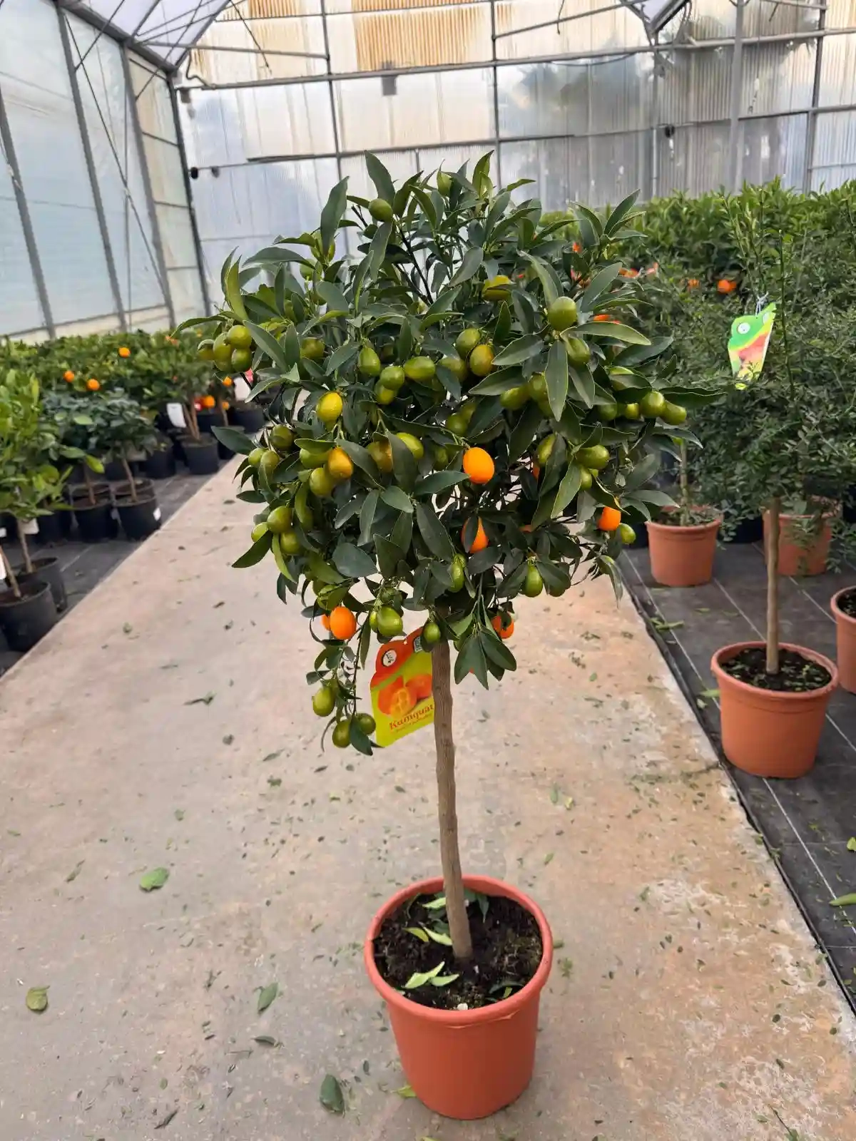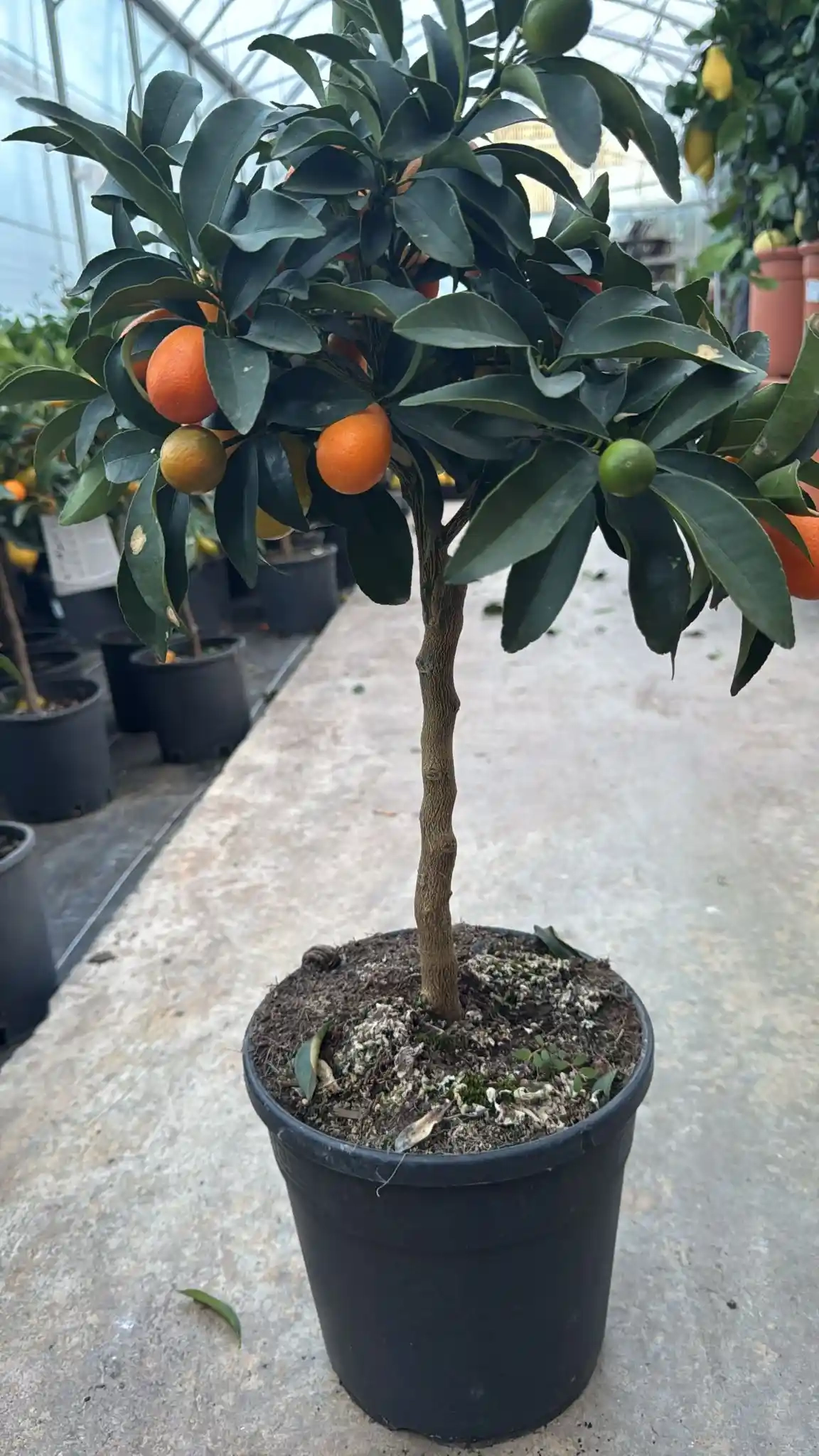 Le Kumquat 'Margarita' (Fortunella margarita ou Citrus japonica) est un agrume exceptionnel et atypique, très prisé pour son abondante fructification hivernale. Il offre de petits fruits de forme ovale, d'un orange éclatant, qui ont la particularité unique de se consommer entiers, sans être épluchés ! L'écorce est douce et très sucrée, tandis que la pulpe libère une note vive et acidulée, créant un contraste explosif et délicieux en bouche.
