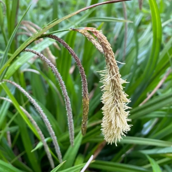 La Laîche à épis pendants est une plante vivace appartenant à la famille des Cypéracées. Ce type de plante se développe généralement dans des milieux humides et marécageux, ce qui lui permet d’évoluer en équilibre avec l’environnement aquatique. Elle se distingue par ses épis pendants qui, comme leur nom l'indique, penchent subtilement vers le bas. Cette morphologie particulière contribue à son charme et à son originalité, la rendant facilement identifiable dans son habitat naturel.
