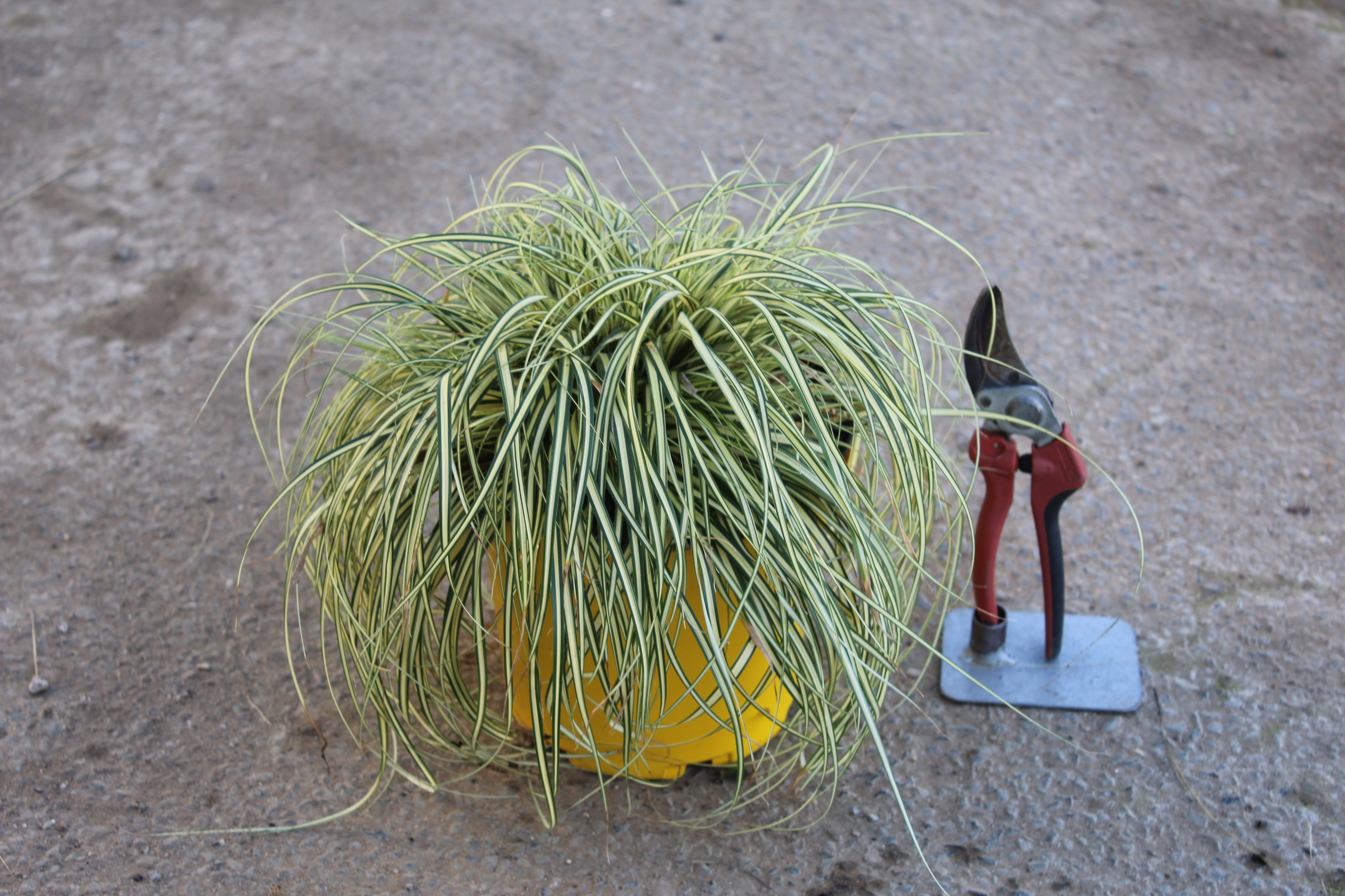 Le Carex oshimensis ‘Evergold’ est peu exigeant en termes d'entretien. En pleine terre, un arrosage modéré est suffisant une fois la plante bien établie, tandis qu’en pot, le substrat a tendance à sécher plus rapidement; il est donc crucial d'arroser régulièrement. Un engrais organique peut être appliqué au printemps pour stimuler la croissance et un bon développement du feuillage.