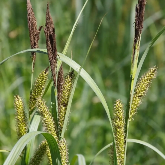 La Laîche des rives, également connue sous le nom scientifique Carex riparia, est une plante herbacée vivace appartenant à la famille des Cypéracées. Cette plante est généralement trouvée dans les zones marécageuses et le long des cours d'eau, où elle se développe parfois en colonies denses. Les tiges de la Laîche des rives peuvent atteindre une hauteur d'un mètre, avec des feuilles étroites et longues qui présentent une texture légèrement rugueuse. Cette robustesse la rend particulièrement adaptée aux bords des rivières et des lacs, où les conditions de sol humide sont omniprésentes.
