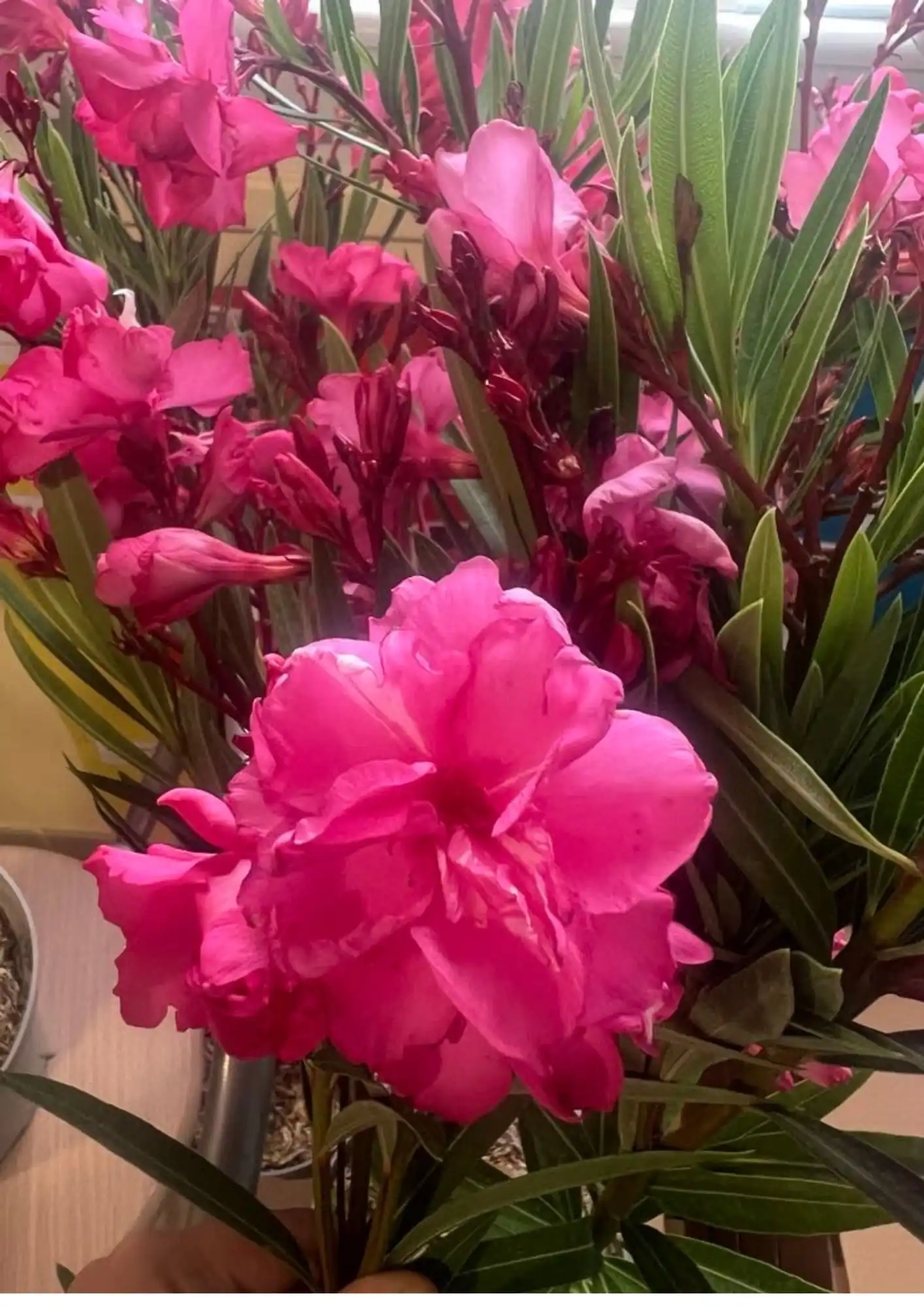 Le port en rondeur du nerium oleander ‘Emma’ est l’une de ses caractéristiques les plus attrayantes. Avec une taille adulte modérée de 1 à 1,50 m, elle est idéale pour les petits espaces où une présence élégante est recherchée. Son allure très compacte est renforcée par ses branches rigides et ses entrenœuds courts, qui lui confèrent une silhouette dense et bien structurée.