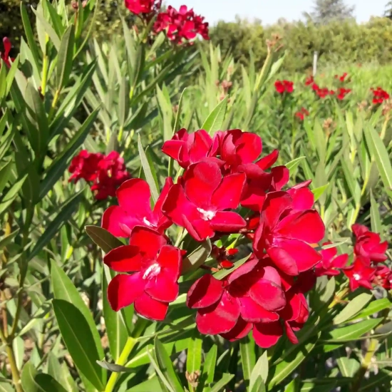 L'une des caractéristiques les plus saisissantes du Laurier rose 'Paseo' est sa floraison généreuse. Les fleurs, qui apparaissent en été, se déclinent dans une palette de couleurs allant du rose clair au rouge vif, attirant ainsi les pollinisateurs comme les abeilles et les papillons. Chaque fleur se compose de cinq pétales en forme d'entonnoir qui s'épanouissent en boules spectaculaires, offrant un véritable spectacle visuel. Grâce à cette floraison éblouissante, le Laurier rose 'Paseo' peut être utilisé pour apporter une touche de couleur à n'importe quelle zone de votre jardin, qu'il s'agisse d'un massif fleuri ou d'une plate-bande.