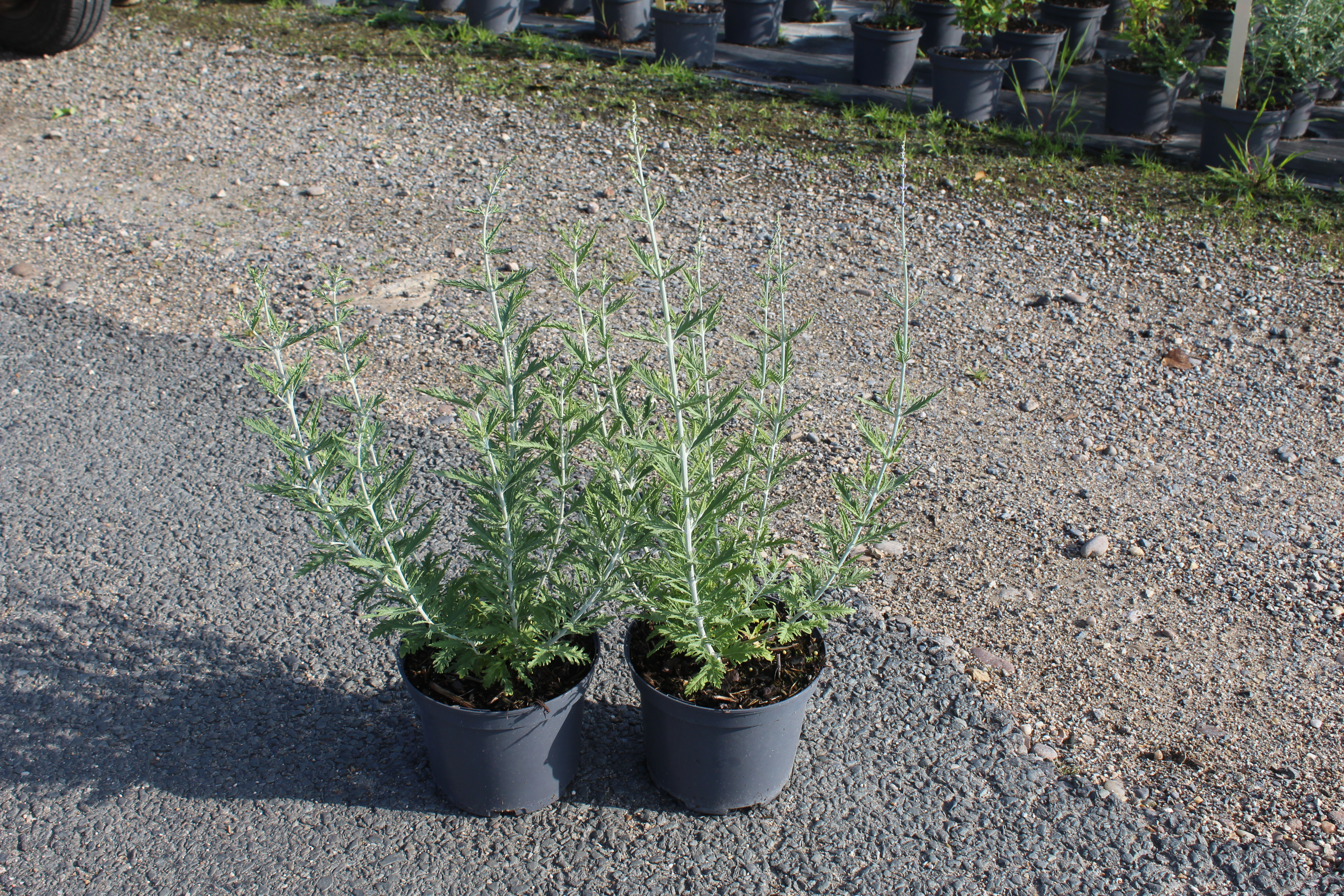 Dans un jardin méditerranéen, la Lavande de Russie trouve également sa place aux côtés d’autres plantes de terrains secs comme le romarin, le thym ou encore la lavande, dont elle est parfois confondue en raison de sa floraison similaire. Cependant, contrairement à la lavande traditionnelle, la PEROVSKIA atriplicifolia est bien plus résistante au froid, supportant des températures allant jusqu'à -15°C, voire -20°C en sol bien drainé.