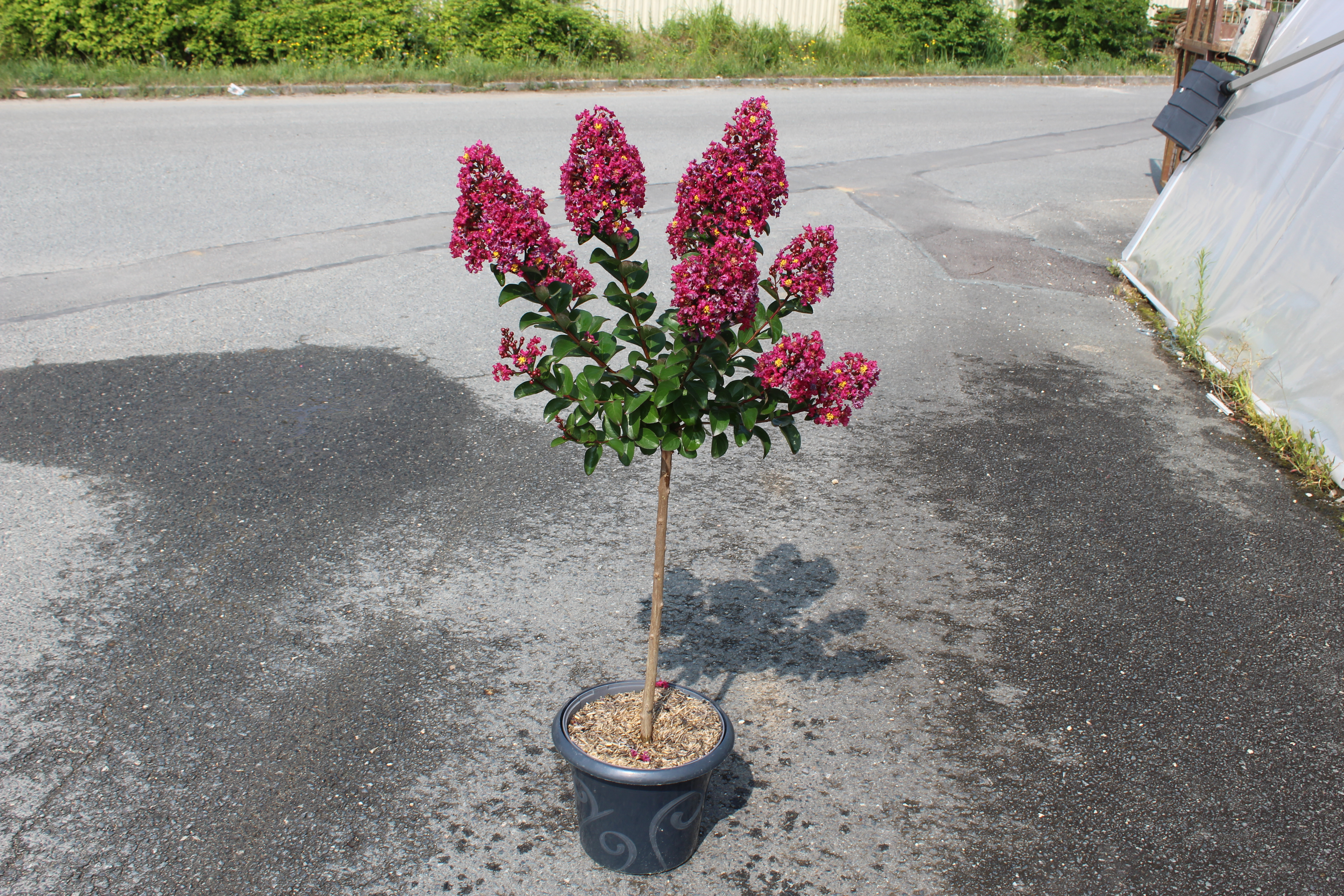 Le Lilas des indes 'Berry dazzle' séduit par son port très compact, sa floraison précoce rose fuchsia dès fin juin et son feuillage évolutif : rouge pourpré au débourrement, vert foncé en été puis rouge flamboyant à l’automne. Facile à entretenir, résistant à la sécheresse et aux maladies, il est idéal en massif, pot ou haie basse, et attire les pollinisateurs.