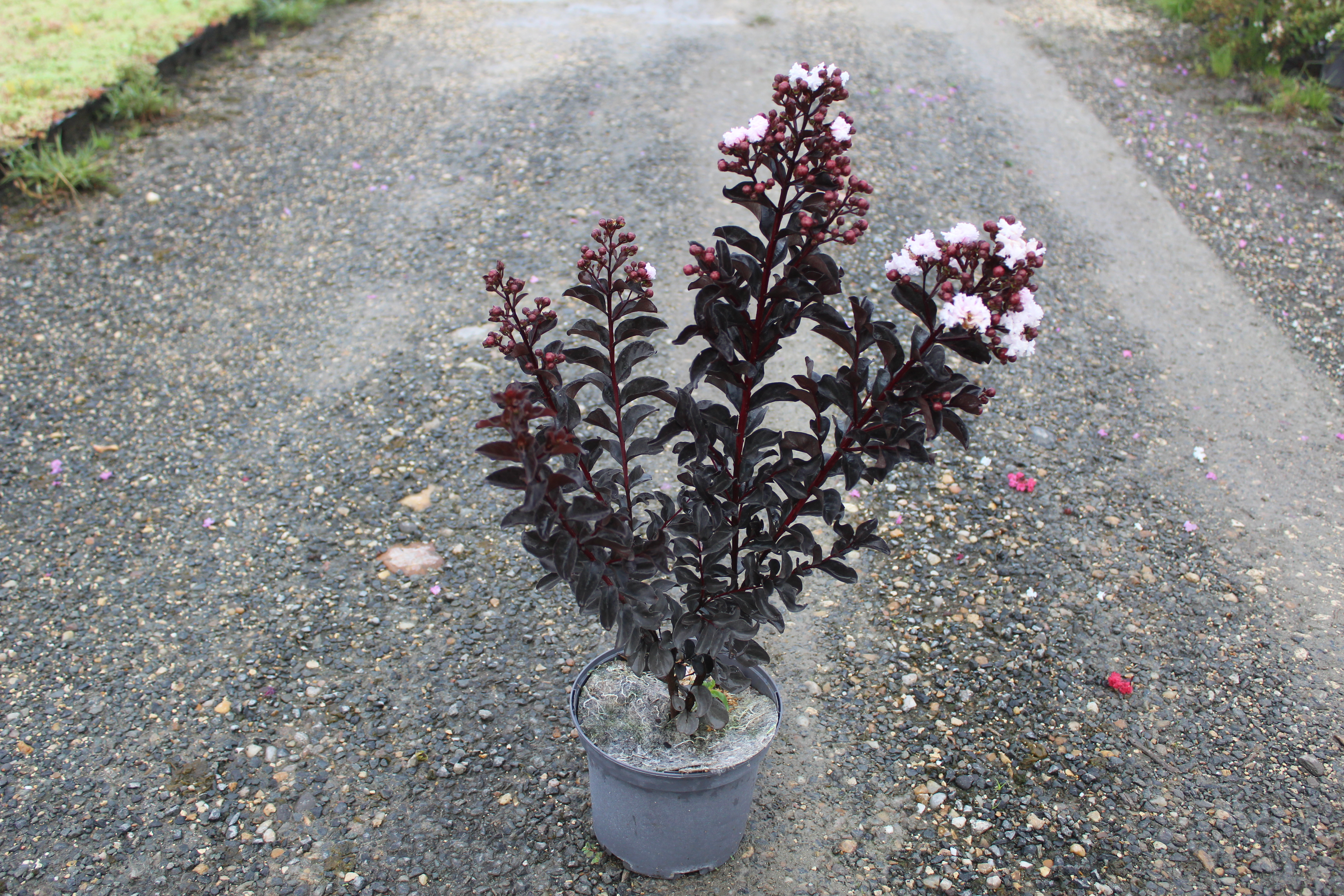 Le Lilas des indes 'Blush', aussi connu sous le nom de BLACK DIAMOND® Blush™, est un arbuste révolutionnaire au feuillage presque noir, mis en valeur par une floraison rose porcelaine romantique. Son port érigé à buissonnant structure élégamment les espaces extérieurs. Résistant à la chaleur et au gel jusqu’à –18 °C, il fleurit généreusement en août et s’intègre parfaitement dans les jardins contemporains ou classiques.