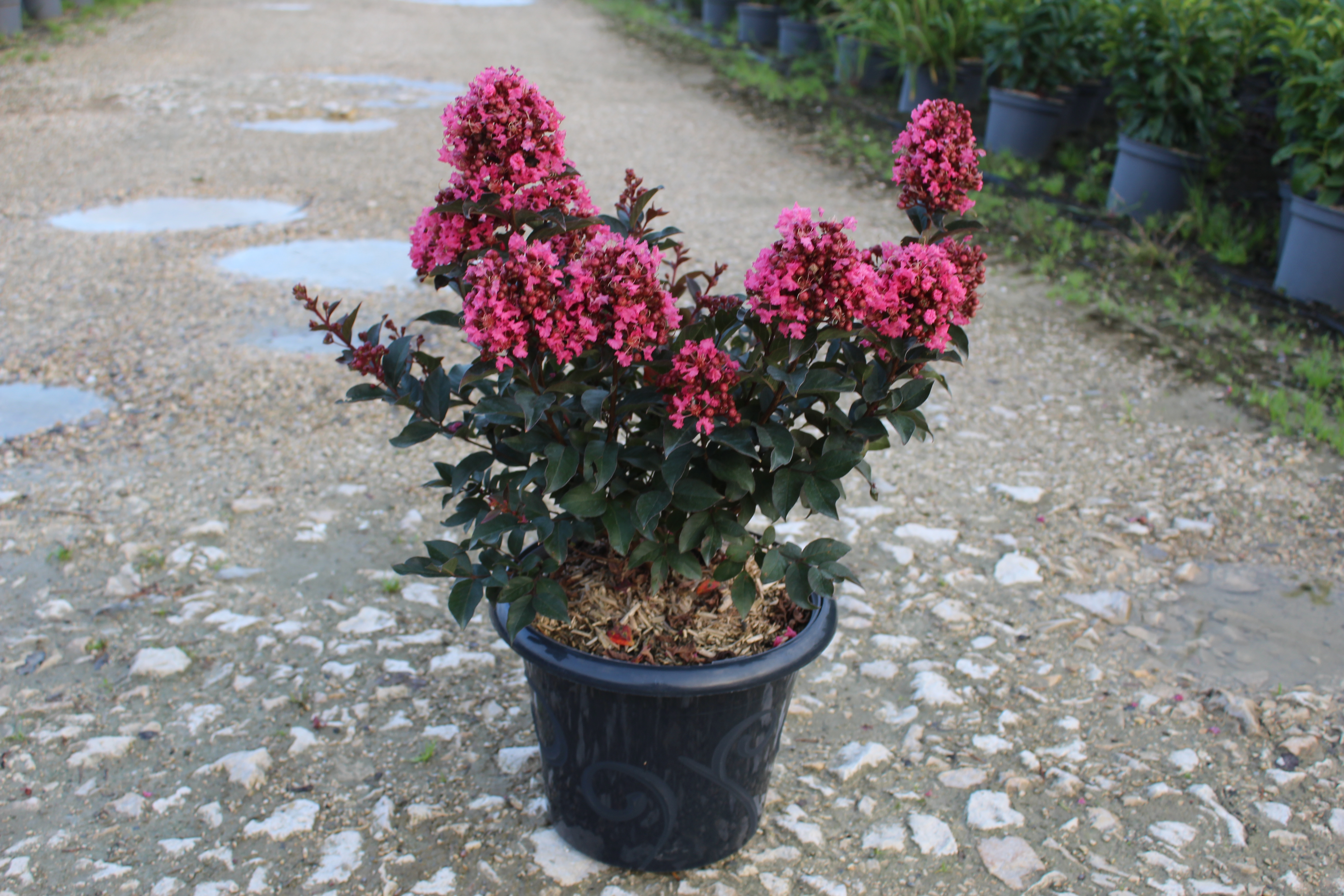 Le Lagerstroemia ‘Coral Magic’ offre une floraison généreuse de fleurs rose saumoné dès juillet, sur un feuillage vert foncé et des pousses rouges. Son port compact, sa croissance modérée et sa robustesse en font une variété idéale en haie basse, en massif ou en bac. Très décoratif et facile à vivre, il attire les pollinisateurs et structure élégamment les petits jardins.