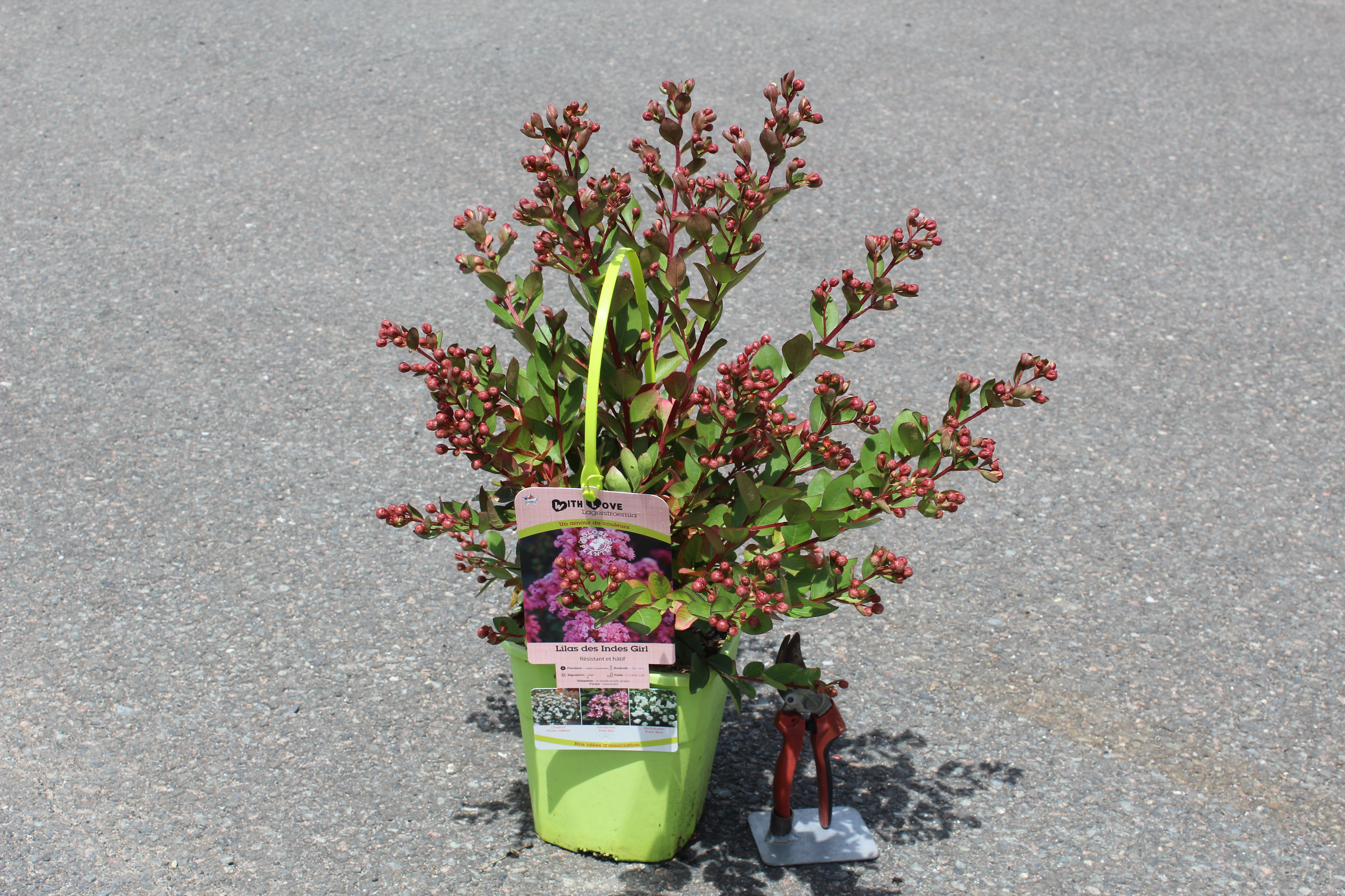 Le Lilas des Indes 'Girl' (Lagerstroemia indica 'Girl') est un arbuste ornemental d'une générosité exceptionnelle, incontournable pour illuminer vos espaces extérieurs pendant la saison estivale. De juillet à septembre, il déploie de somptueuses grappes florales aux pétales délicatement froissés, comparables à du papier crépon, offrant une floraison vibrante et spectaculaire.