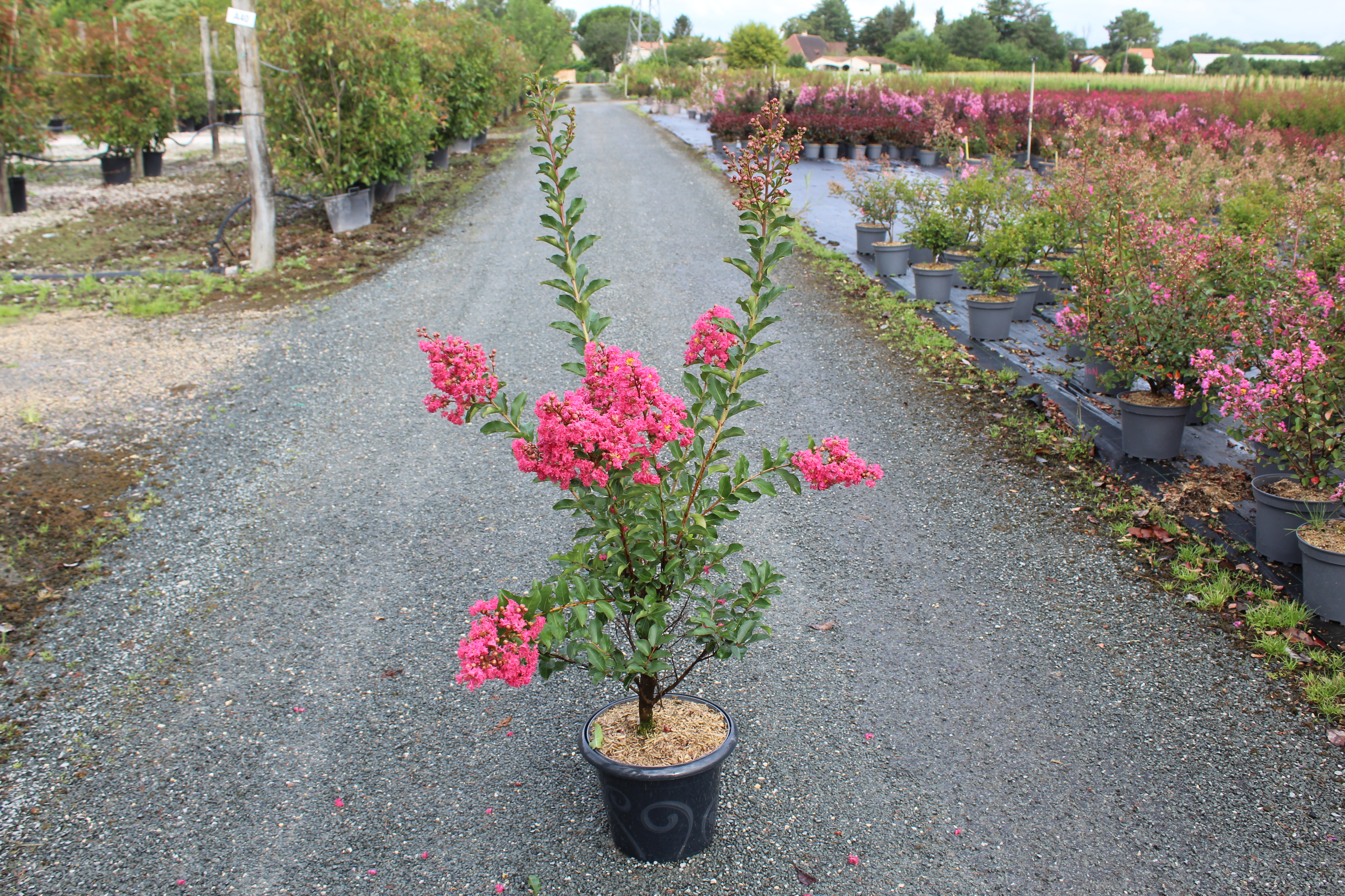 Le Lilas des indes 'Grand cru' est une plante au charme exceptionnel qui attire les jardiniers amateurs et les passionnés de botanique. Avec ses fleurs majestueuses, ce cultivar se distingue par son port élégant et sa floraison généreuse. Il fait partie de la famille des Lythraceae, dont il constitue l'une des plus belles représentations. Ce lilas offre une explosion de couleurs violettes, roses ou blanches selon la variété, créant ainsi un spectacle visuel à couper le souffle pendant la saison estivale.